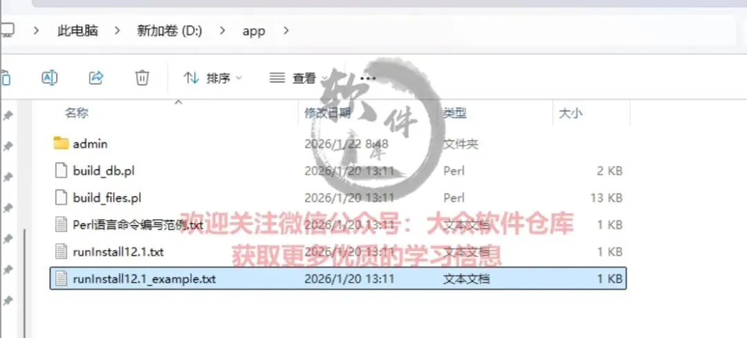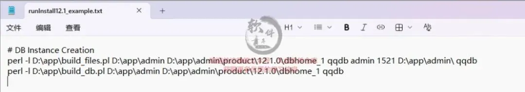 29.将复制的文件粘贴到我们数据库安装盘下(D/app),记事本格式打开”Perl语言命令编写范例”。