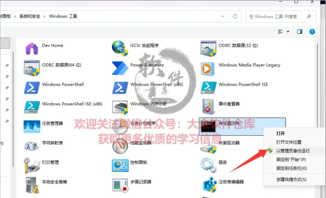 32.在控制面板-系统和安全-Windows工具那里用管理员身份运行命令提示符;