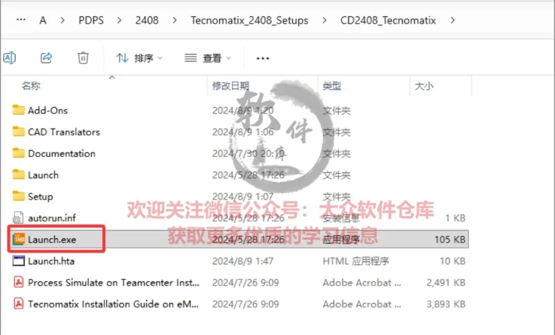 38.返回安装包,依次打开5.Tecnomatix_2408\CD2408_Tecnomatix文件夹,管理员身份运行Launch程序;