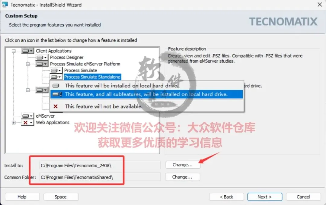 43.选择需要安装的产品,点击Change可以修改软件安装路径;