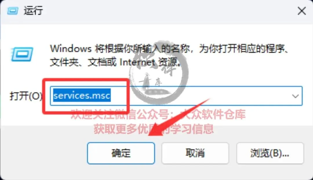 58.Win+R键调出运行面板输入:services.msc,然后点击确定;