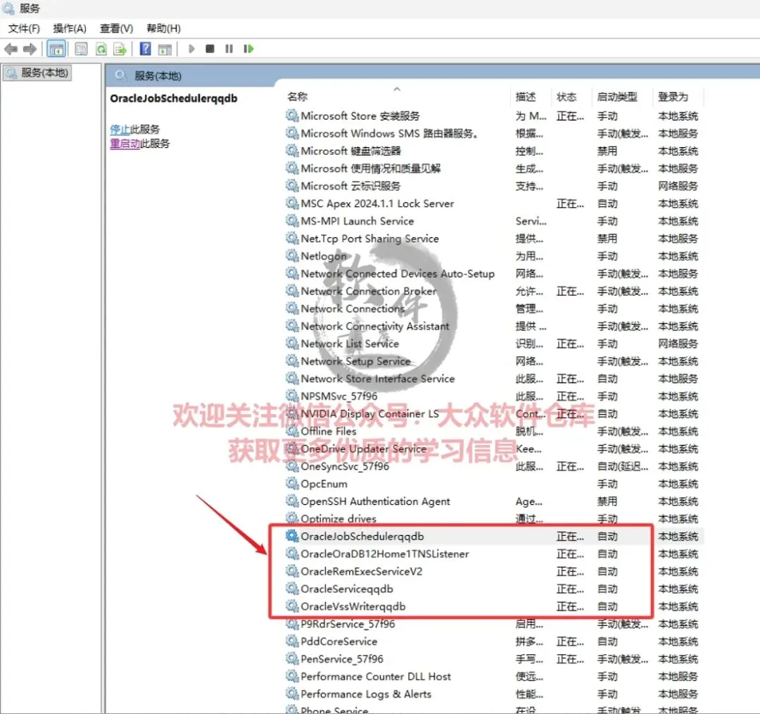 59.将所有oracle开头的服务更改为自动,并重新启动。