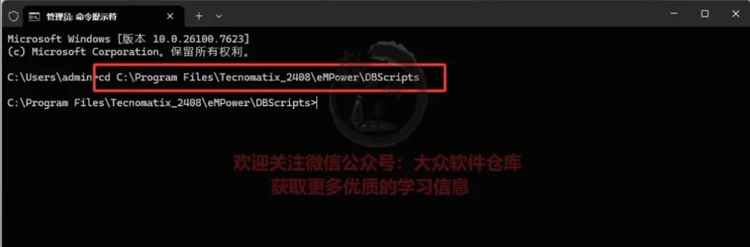 60.开启监听。(1)创建数据库实例。管理员身份运行命令提示符,输入cd +initDB.bat文件路径(安装位置的eMPower——DBScripts下)注意cd后有空格。参考路径:cd C:\Program Files\Tecnomatix_2408\eMPower\DBScripts