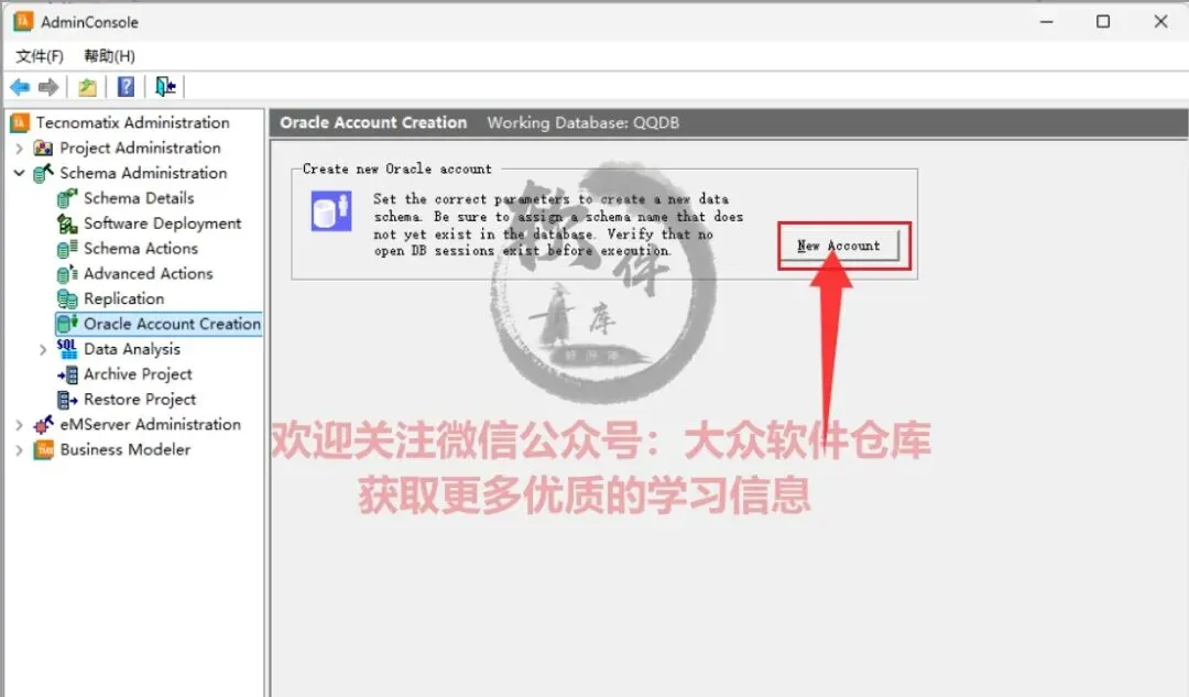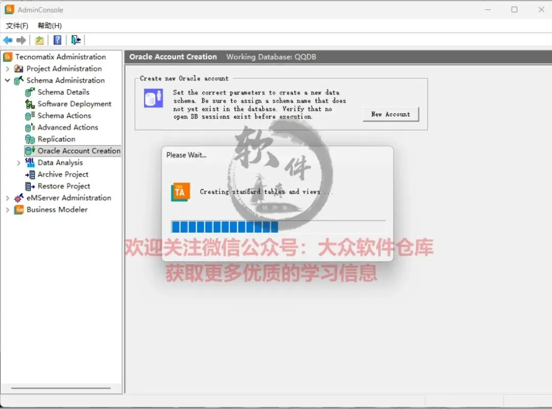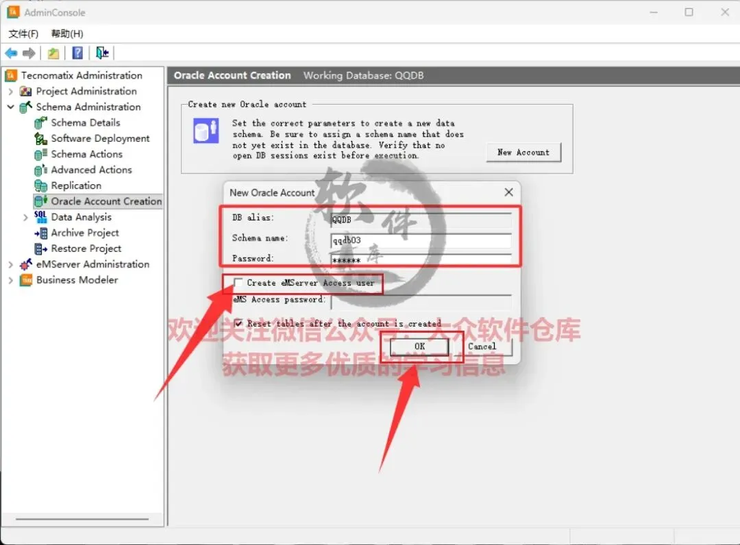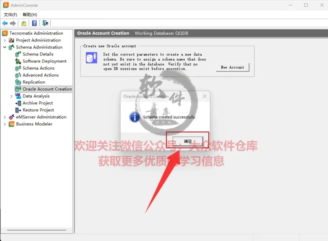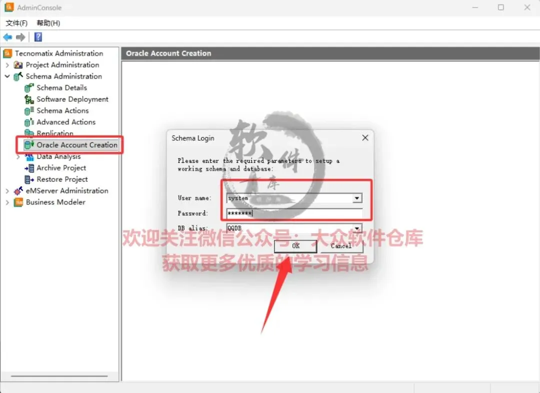 64.点击Schema Administrator→Oracle Account Creation,输入用户名:system,密码:manager,点击OK;