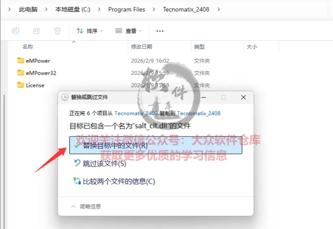 77.到Tecnomatix_2408安装路径下进行粘贴替换。(我是默认路径安装,如果你修改了安装路径则到自己的安装位置下进行粘贴替换)