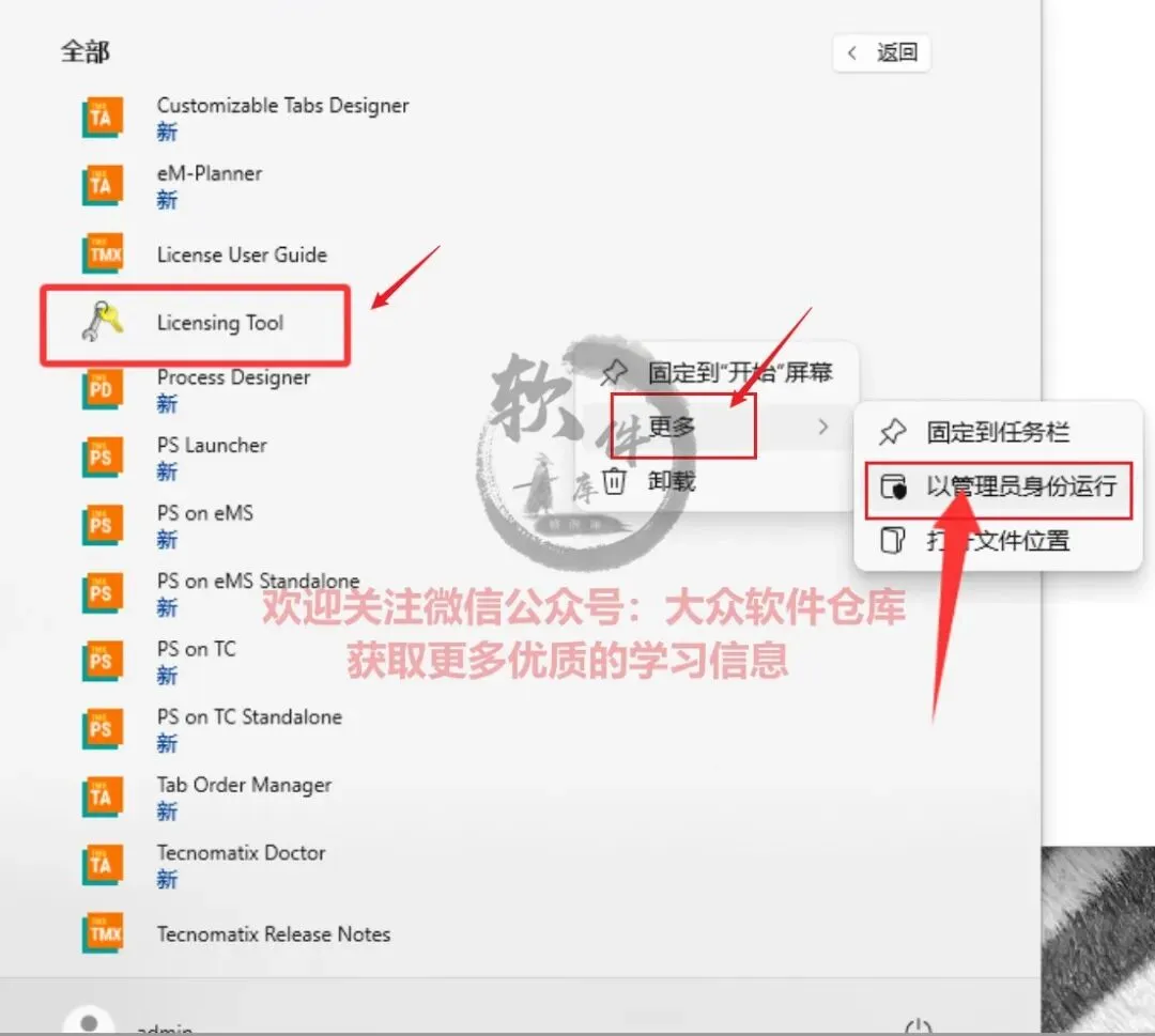 83.开始菜单以管理员身份运行Licensing Tool。