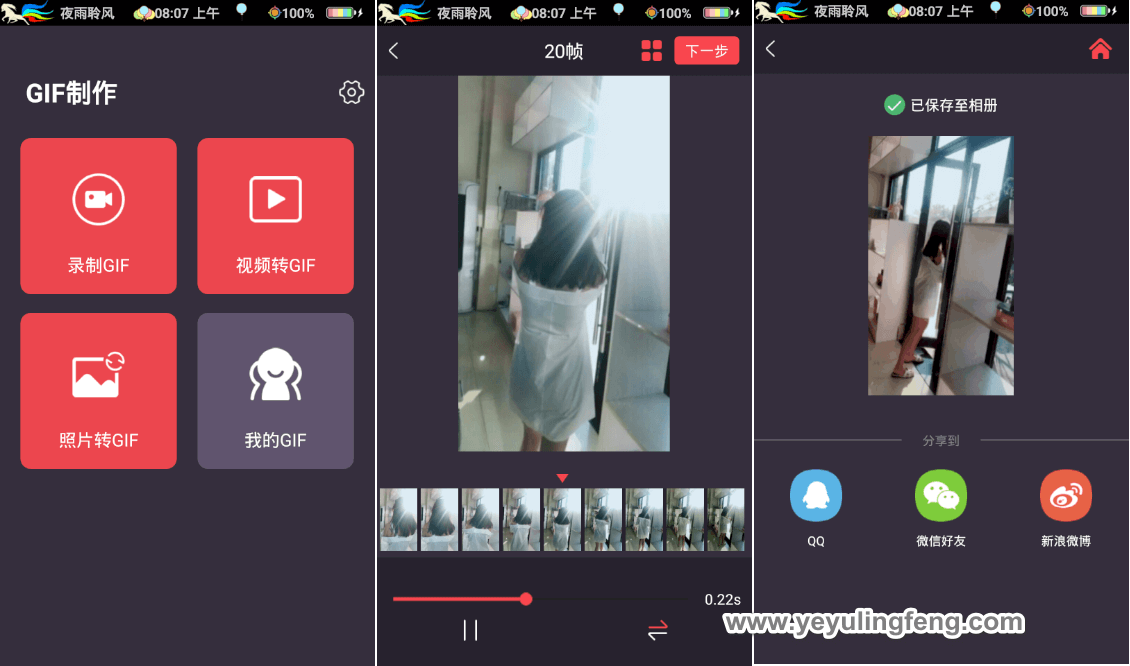 GIF分为静态GIF和动画GIF两种,支持透明背景图像,适用于多种操作系统,跟传统的静态页面不同的是,gif不仅支持静、动态,而且图片表达的信息也更为丰富,同时GIF还广泛支持Internet标准,一般的站点多多少少会加点动态GIF图片用来装饰。撇开这些不谈,日常津津乐道的聊天斗图也是离不开gif动图的,其实GIF是将多幅图像保存为一个图像文件,从而形成动画,所以归根到底GIF仍然是图片文件格式。目前手机移动端关于静态图片的工具有很多,但是动态gif图制作工具还是少之又少,今天老夜为大家带来的就是一款gif制作工具,这是一款集GIF录制图片视频转换GIF图片为一体的软件,可以很轻松将视频或图片转换成GIF图片。