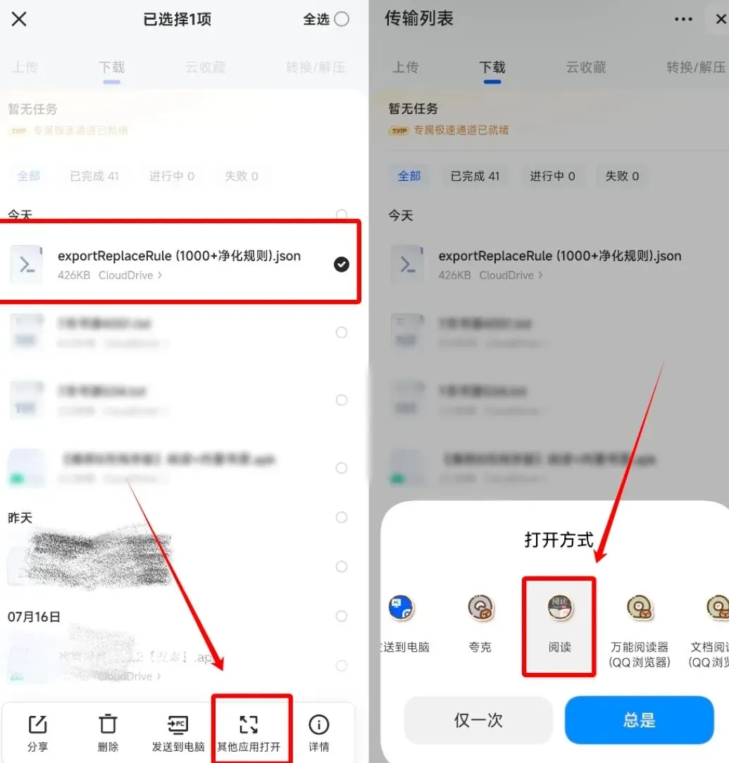 这边也准备了本地的json文件,下载后长按,点击“其他应用打开”,导入阅读即可~
