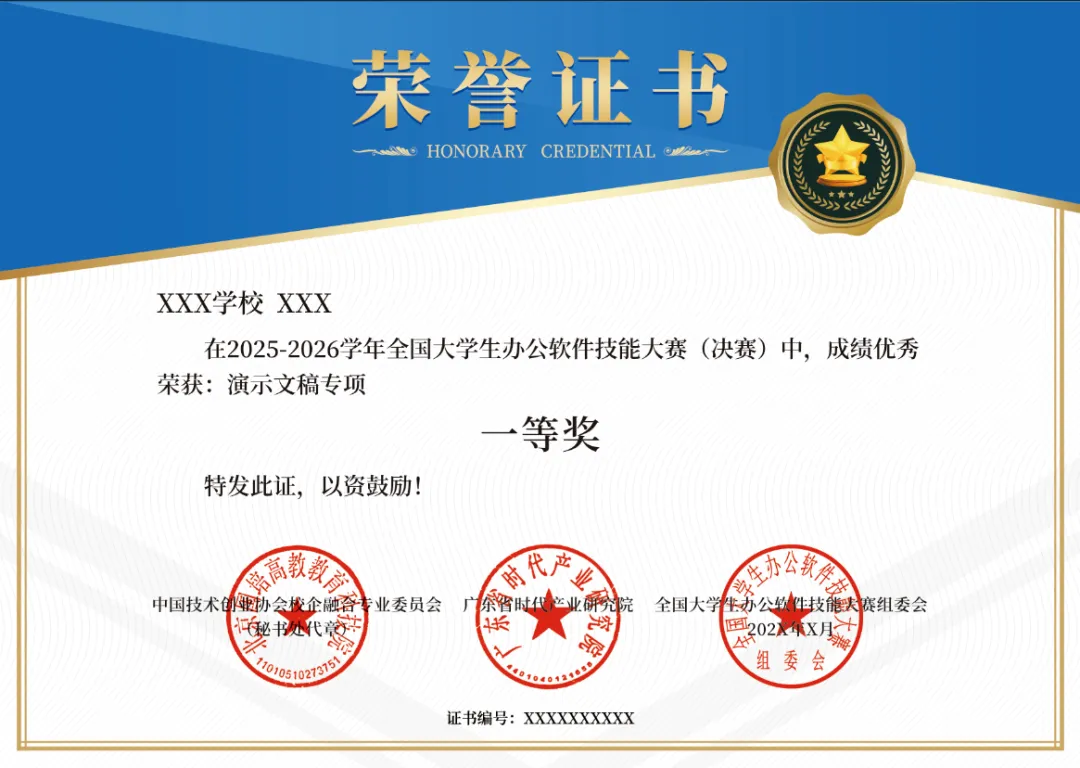 为深入贯彻国家《加快数字人才培育支撑数字经济发展行动方案(2024—2026年)》的通知,提升全民数字技术应用能力,培育适应数字经济时代发展需求的高素质人才,进一步激发高校学生创新实践热情,强化专业技能与信息化素养的融合提升,促进产学研用紧密结合。以赛促学、以赛促训,以赛选拔培养数字人才。经研究决定,中国技术创业协会校企融合专业委员会与广东省时代产业研究院将于2025 年8 月至2026 年5 月共同主办2025 -2026 学年全国大学生办公软件技能大赛。本届大赛共设有文字处理、电子表格、演示文稿3个专项赛道,以提升技能为目的,以促进就业为导向,为广大青年学生搭建相互交流展示风采的平台。