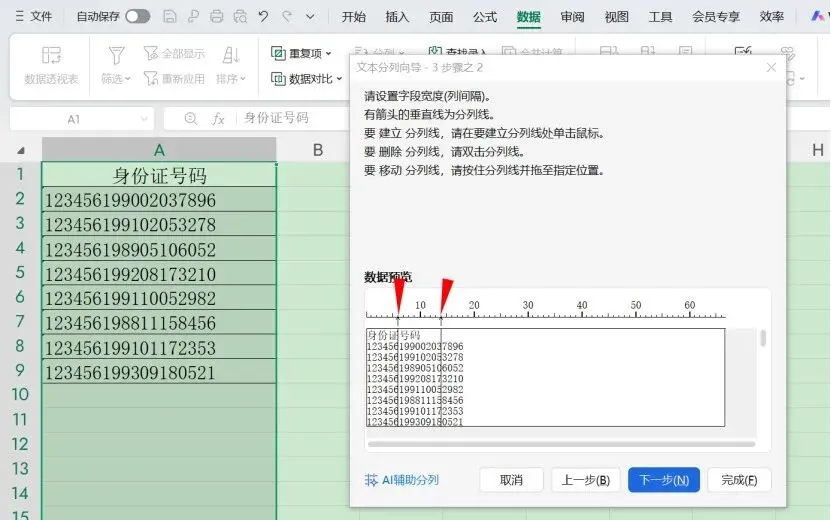 作为新手,不需要用到公式,只通过分列的功能提取身份证号中的出生日期,是比较容易掌握和操作的,下面让我们一起来学学吧。