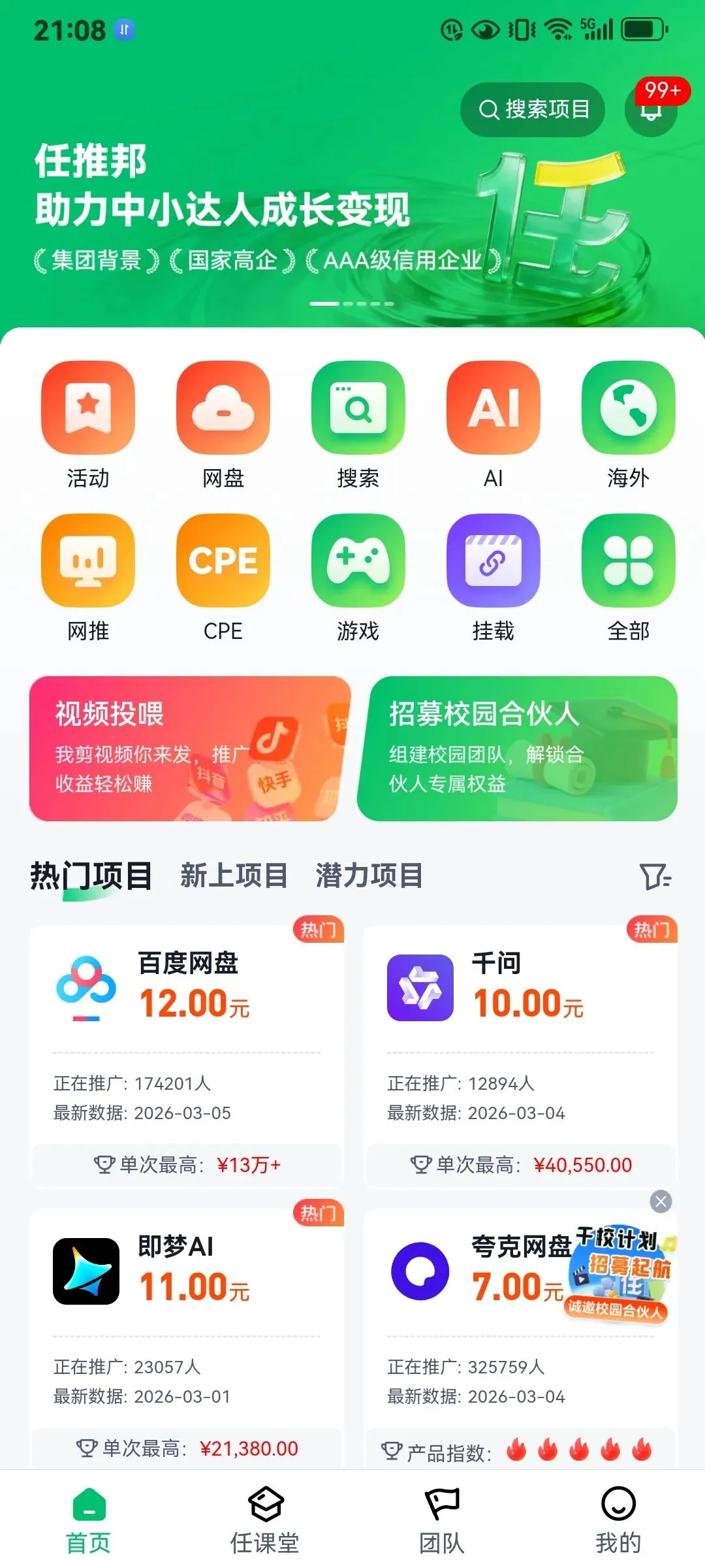 下面介绍一下任推邦这个平台,说实在我在这个平台挣得不多,现在几乎放弃了,虽然这样我还是介绍一下这款软件,它的确有它有优势的一面。