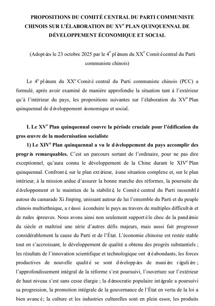 中共中央关于制定国民经济和社会发展第十五个五年规划的建议(法文).pdf
