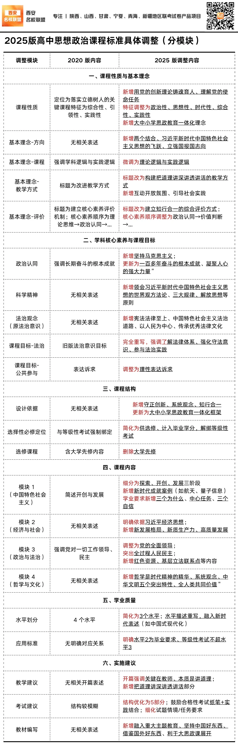 2025版《高中思想政治课程标准》修订变化