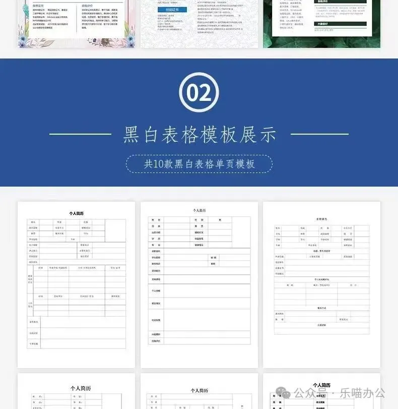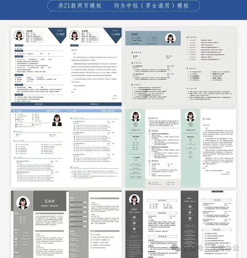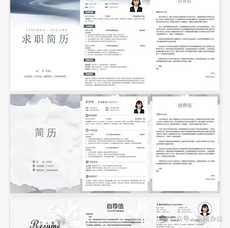 啥风格都有,总有一款适合你,有中文简历,单页简历,自荐信,英文简历,双页简历,封面和表格等多种简历,HR看得贼爽。