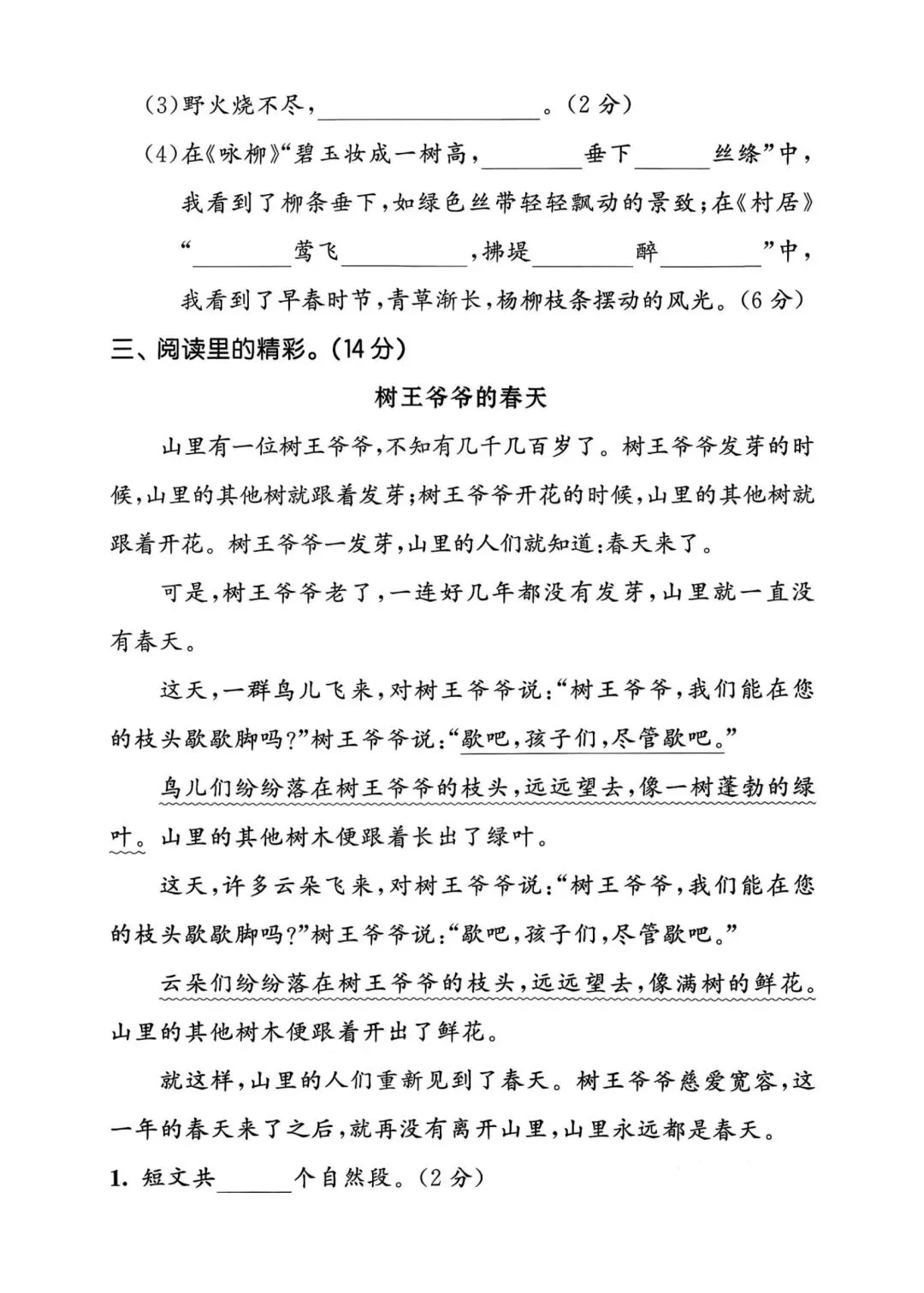 新版二年级下册语文第一单元测试卷含答案可打印