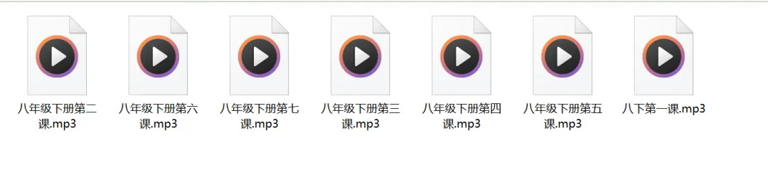八年级下册音频+PDF自取! 通过网盘分享的文件:八年级下册教科书电子版+音频 链接: https://pan.baidu.com/s/1x1gK7V_G1XAe4oM4D2EEfA 提取码: 4321 点击下方卡片也可自取☞ 自取自取!点个赞再走吧 国家智慧教育平台官网的搬运工,侵权删除!