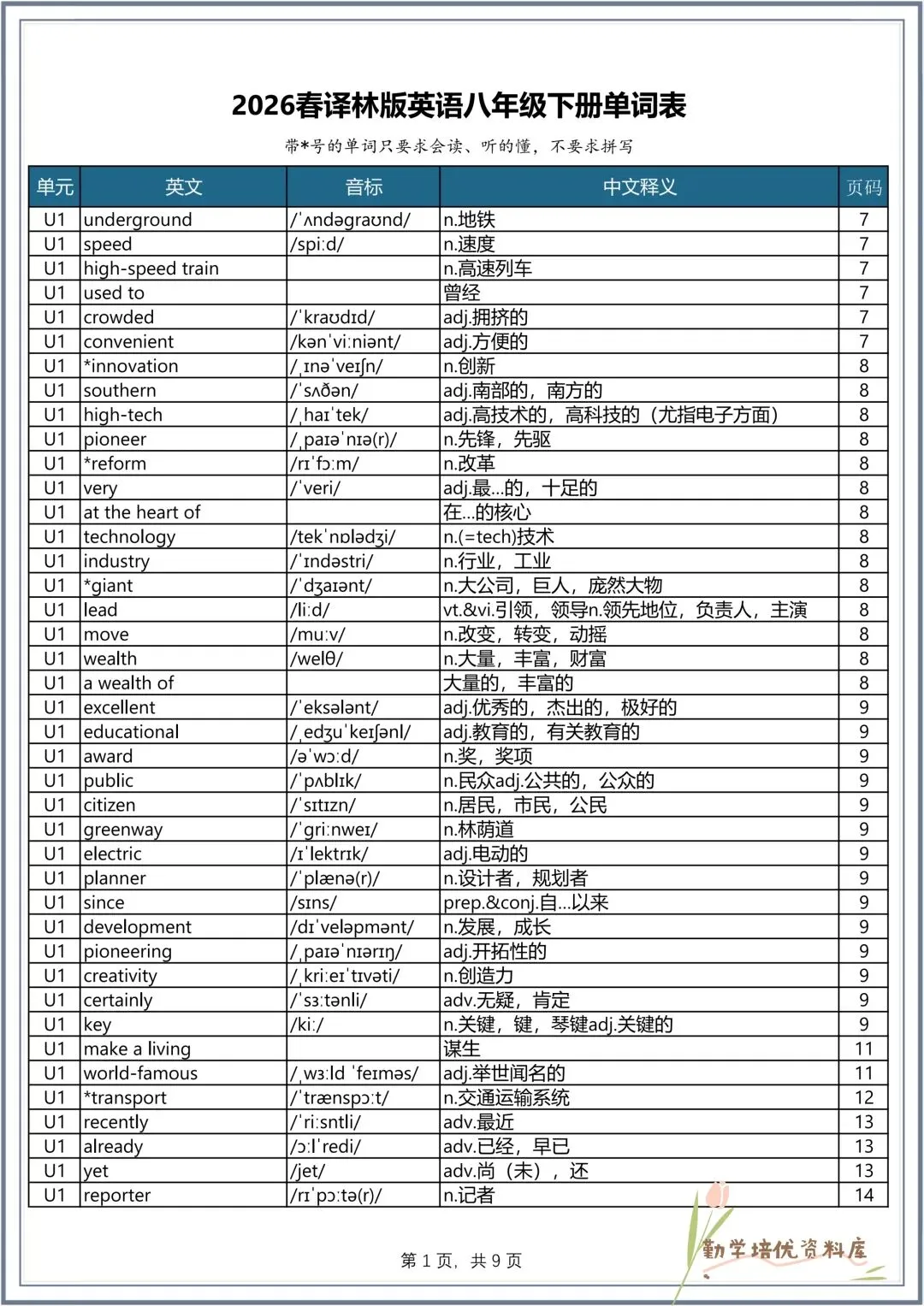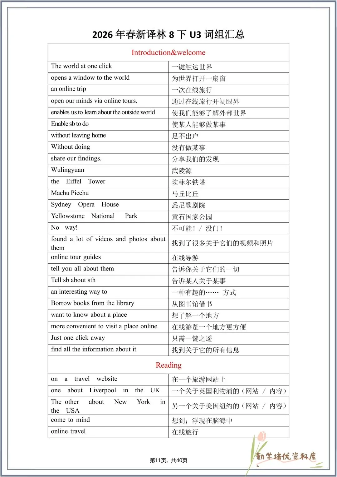 新版教材|2026春(译林版)八年级下册英语全册单词表+词组汇总(背诵版+默写版),可下载打印!