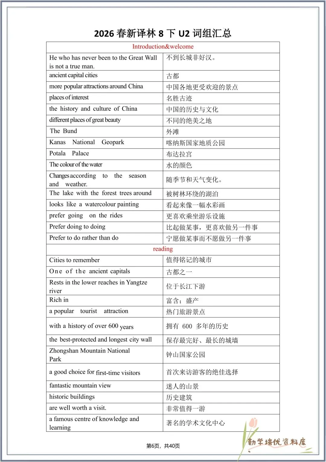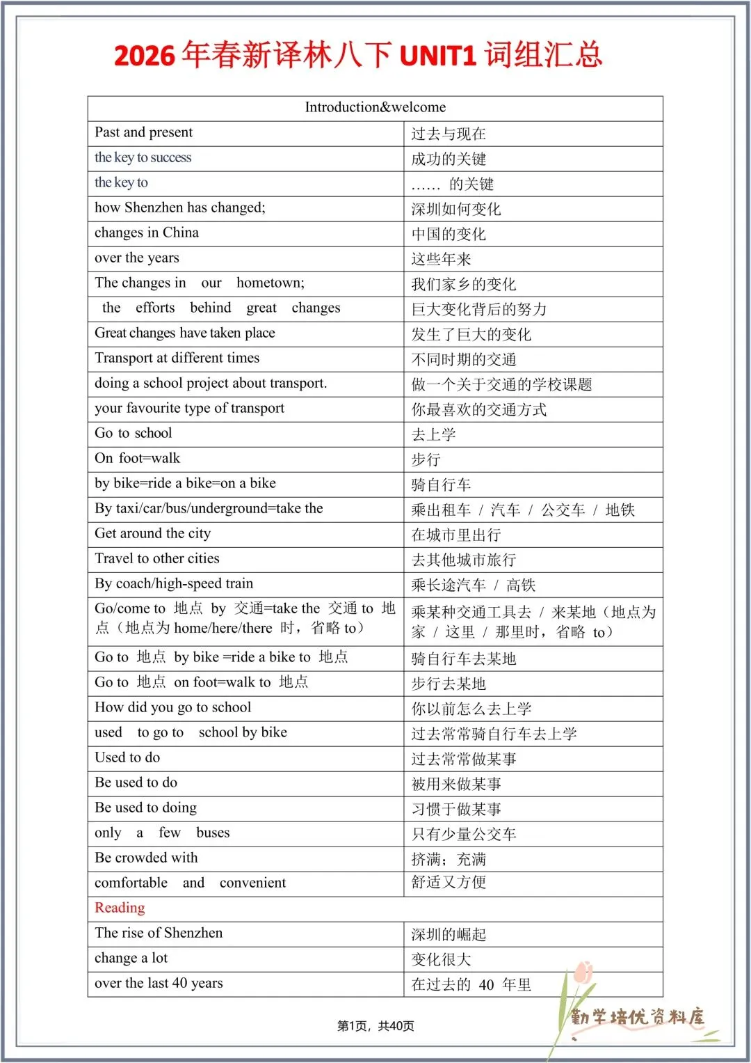 今日老师精心给大家整理了:2026春(译林版)八年级下册英语全册单词表+词组汇总,背诵版+默写版,电子版可下载打印!