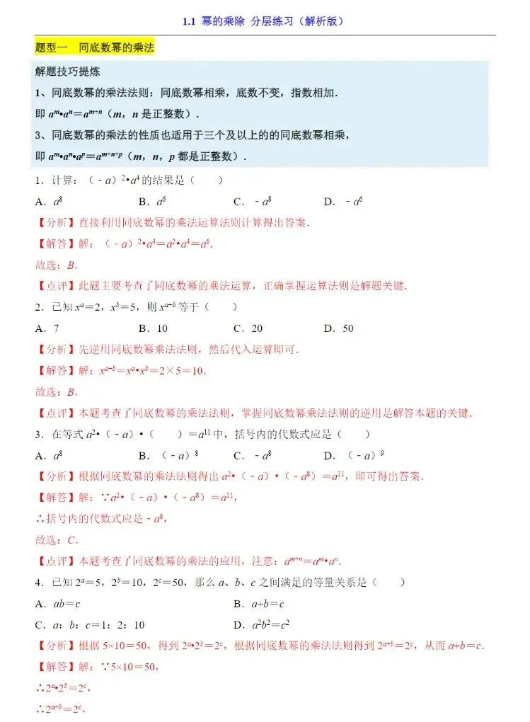 小鹿老师今日分享:七年级下册北师大版数学开学必备每课一练