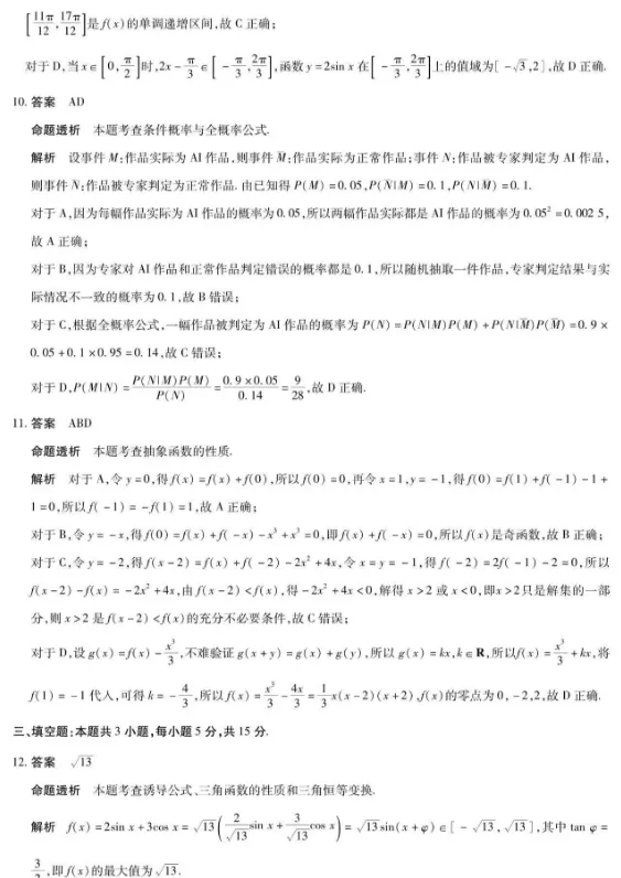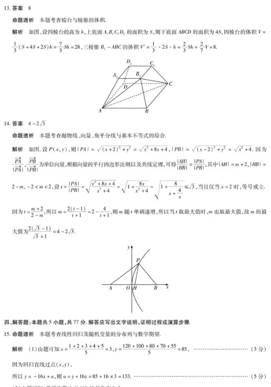 天一大联考河南高三开学考素质评价数学答案