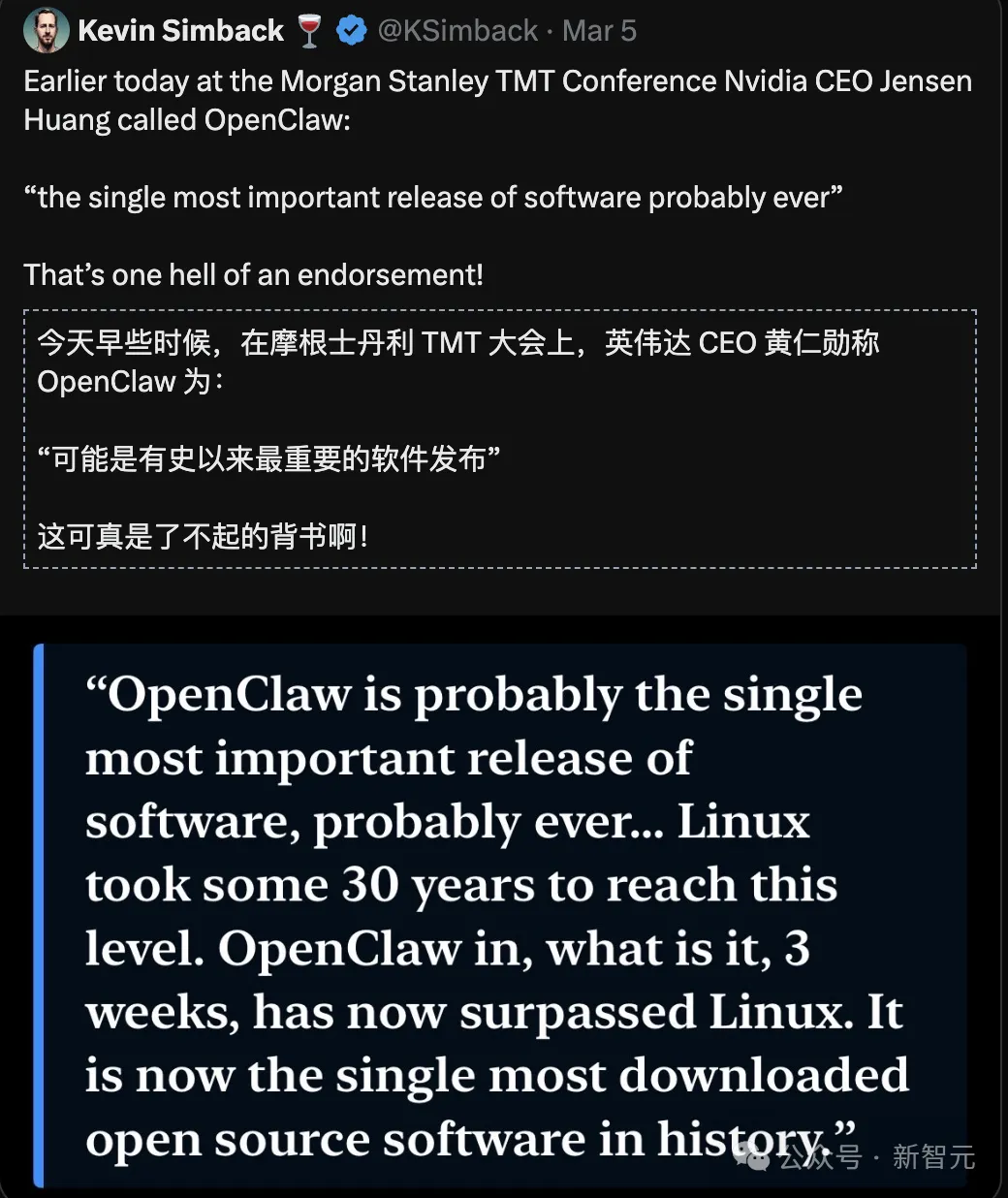 最近,黄仁勋表示:OpenClaw可能是历史上最重要的软件发布。