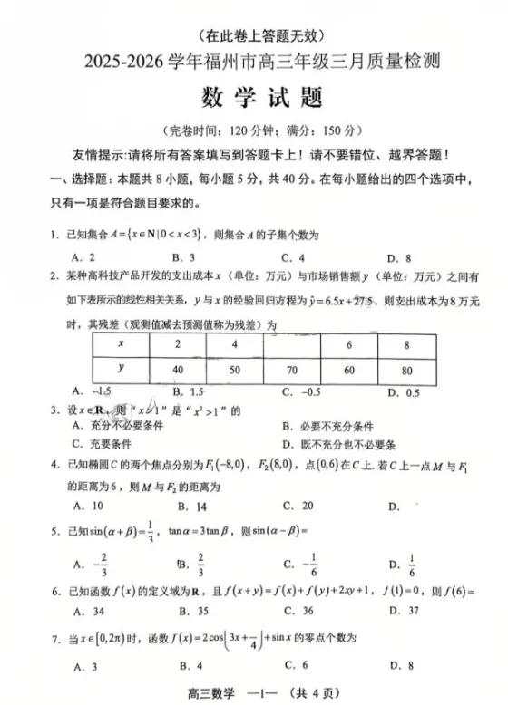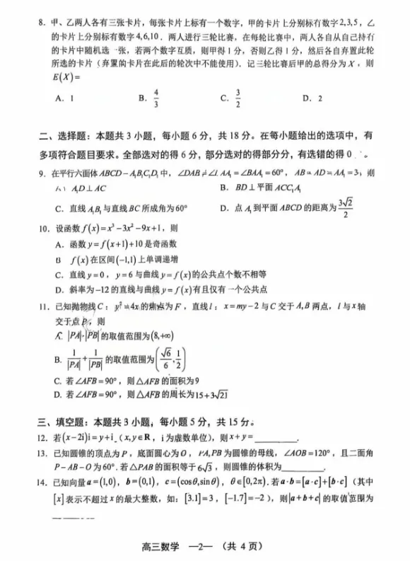数学试题_2026山西九师联盟高三第7次质量检测.pdf