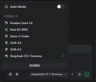 Builder with MCP:增强版的 Builder 模式,可能包含更多高级功能或特定优化,以支持更复杂的开发任务。在 Builder 的基础上,可能提供额外的工具或集成,以支持更复杂的开发任务。这可能包括更高级的代码分析、项目管理工具或其他开发辅助功能