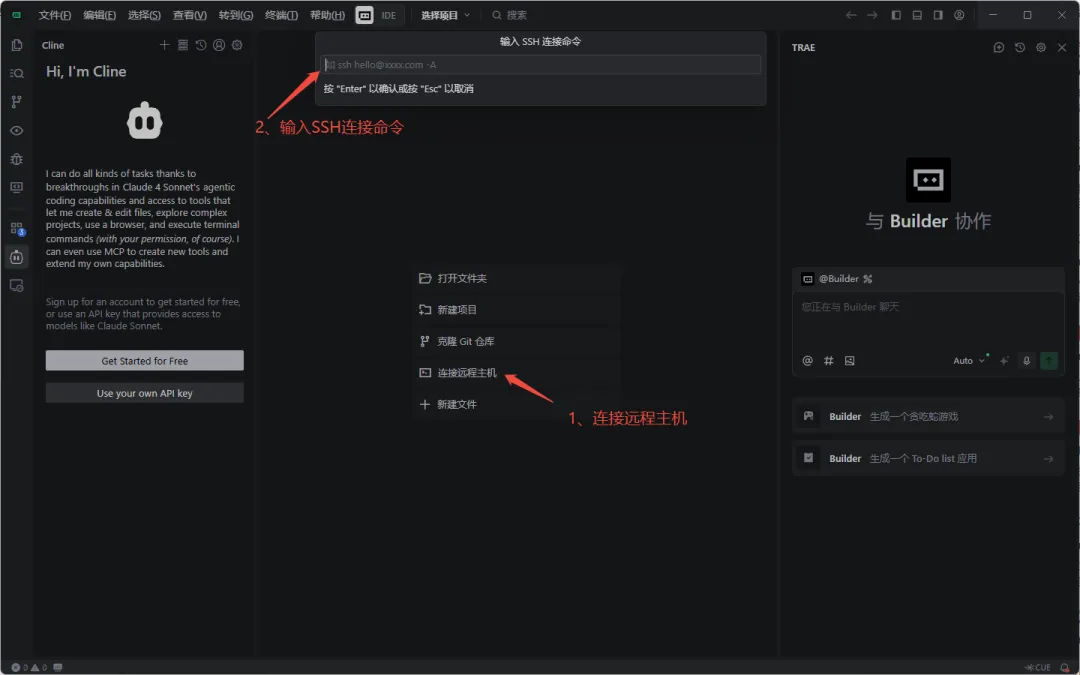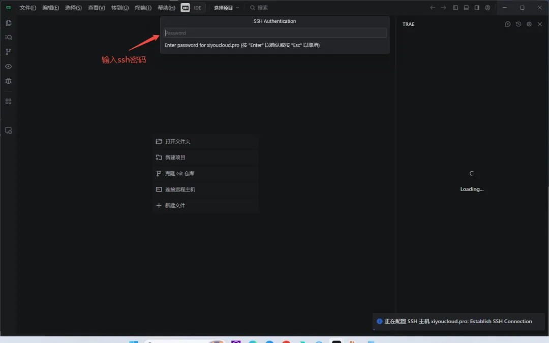 如果你经常使用Trae连接服务器,还可以配置免密登录,否则每次登录都需要输入一次密码。