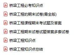今天分享的资料是「0892-桥梁工程」电子版+学习笔记+知识点总结+期末考试重点+复习资料+习题集及答案+名词解释+历年真题试卷及答案+题库及答案+复习重点+思考题及参考答案+公式总结+考试重点基础题+知识总结+高清PDF可打印+免费分享!