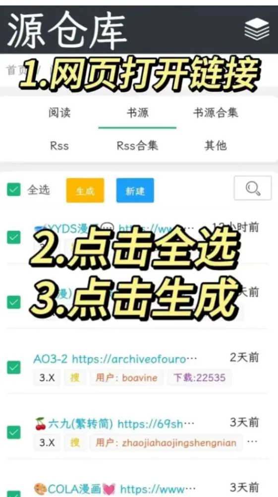 通用源:源仓库、9999+通用书源、第三方书源、有声读物源