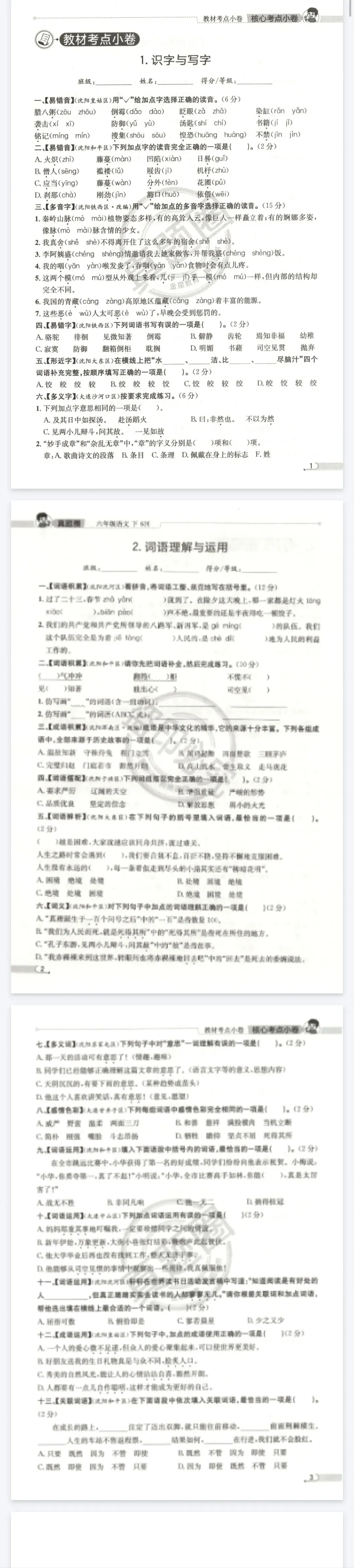 真题圈核心考点小卷北京版语文3-6年级下册,链接:https://pan.quark.cn/s/3064df082649