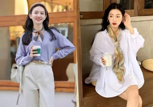 丝巾 , 真的是重灾区。 很多姐姐觉得丝巾优雅 , 但说实话 , 没质感的宽大丝巾往脖子上一裹 , 不是优雅 , 是把脖子线条全遮没了 , 精气神直接垮掉。 不如把脖颈露出来 , 干净利落 , 比什么丝巾都好看。