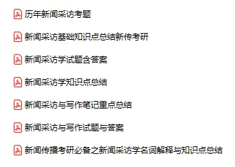 今天分享的资料是「0851-新闻采访学」电子版+学习笔记+知识点总结+期末考试重点+复习资料+习题集及答案+名词解释+历年真题试卷及答案+题库及答案+复习重点+思考题及参考答案+公式总结+考试重点基础题+知识总结+高清PDF可打印+免费分享!