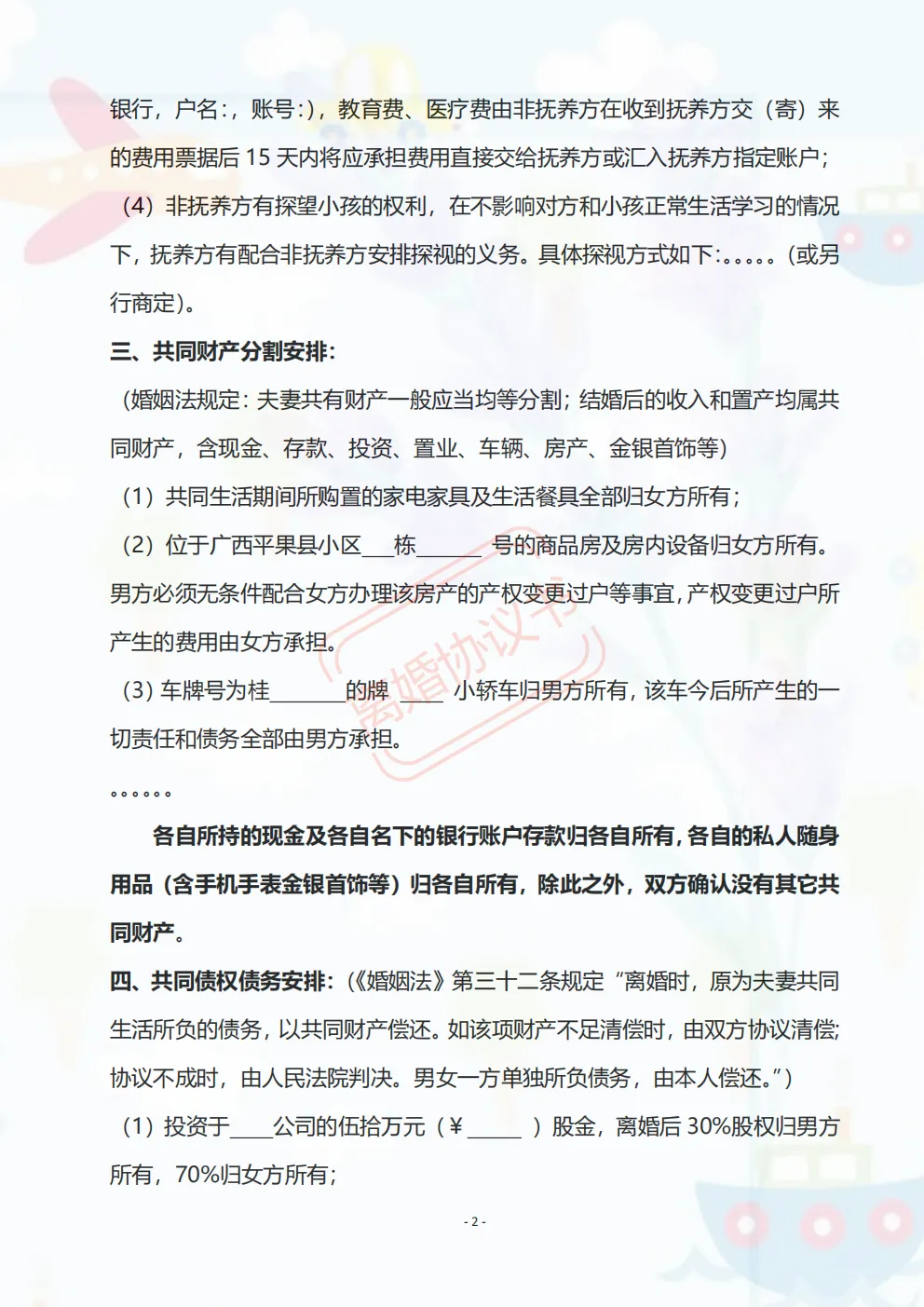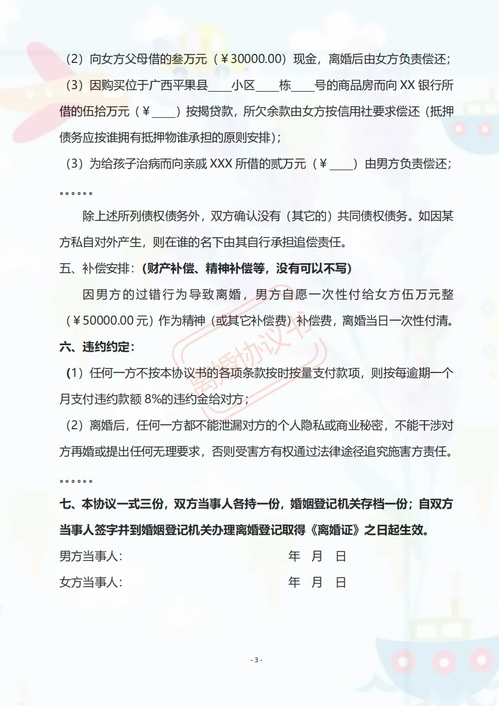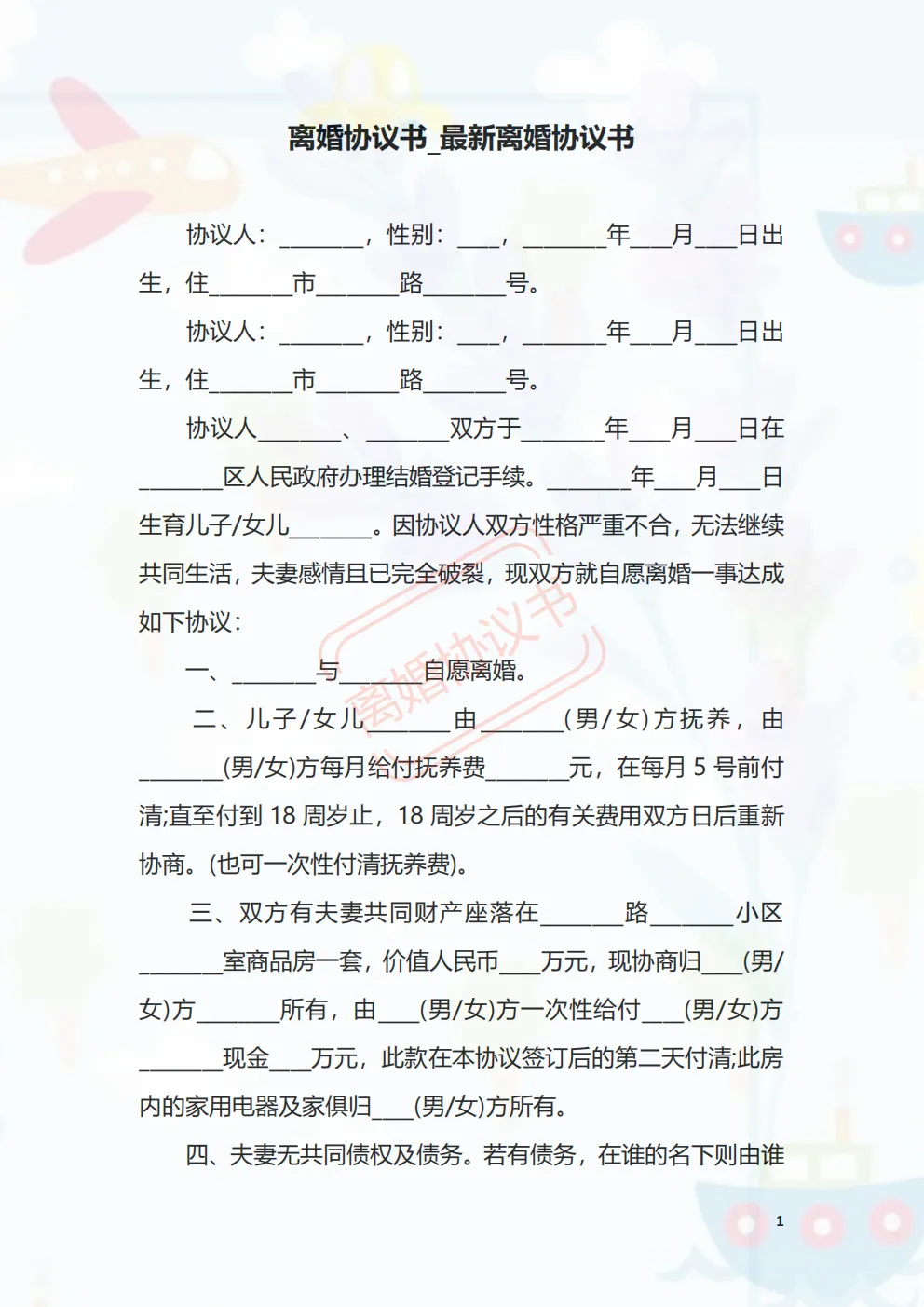 【2026离婚协议模板】《2026年最新版离婚协议书》word标准版模板, (有/无财产.有/无债务.有1/2/3子女)可免费修改下载打印!