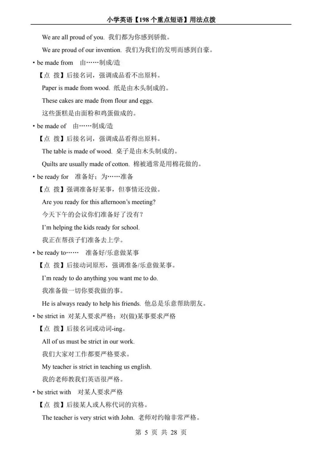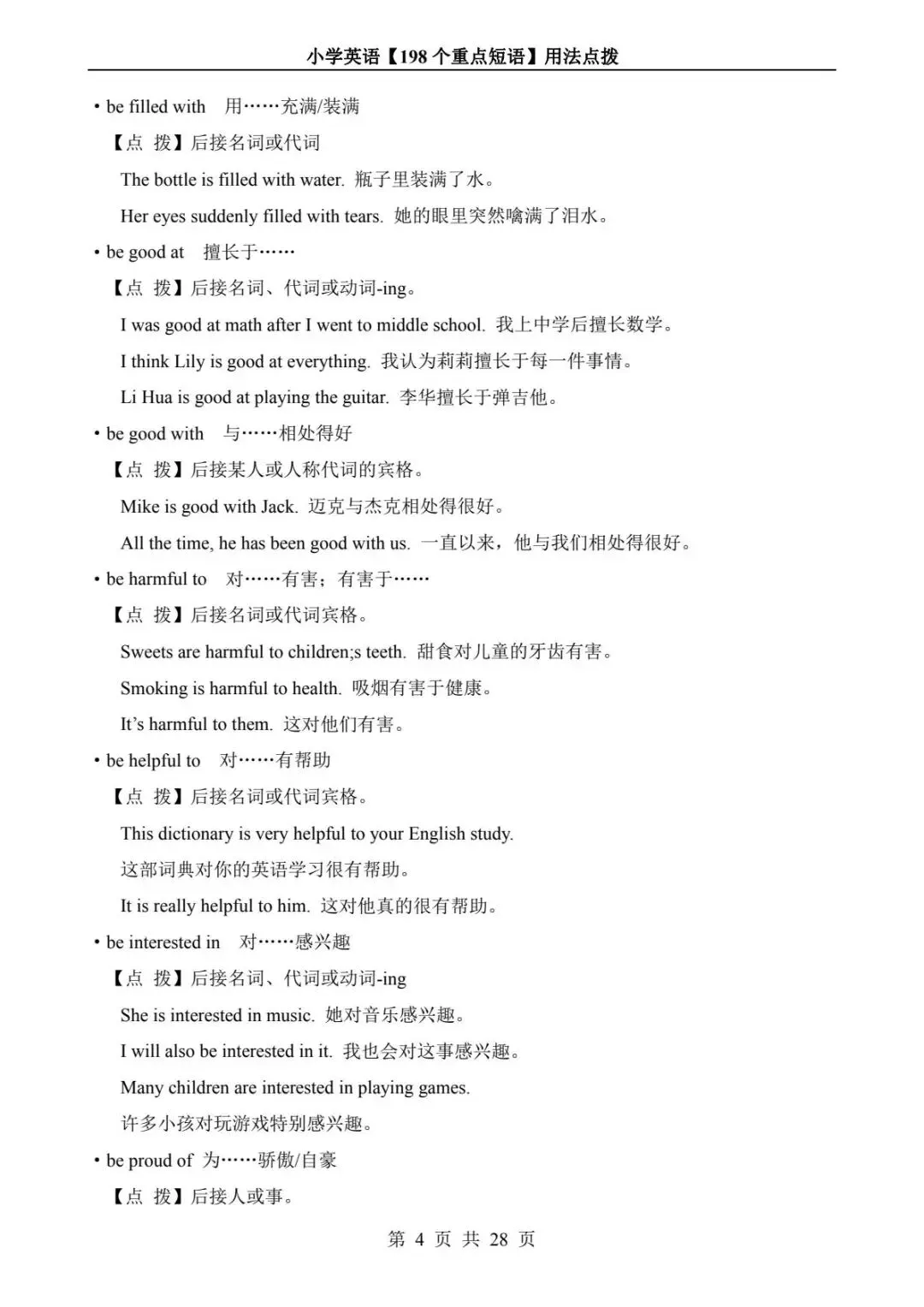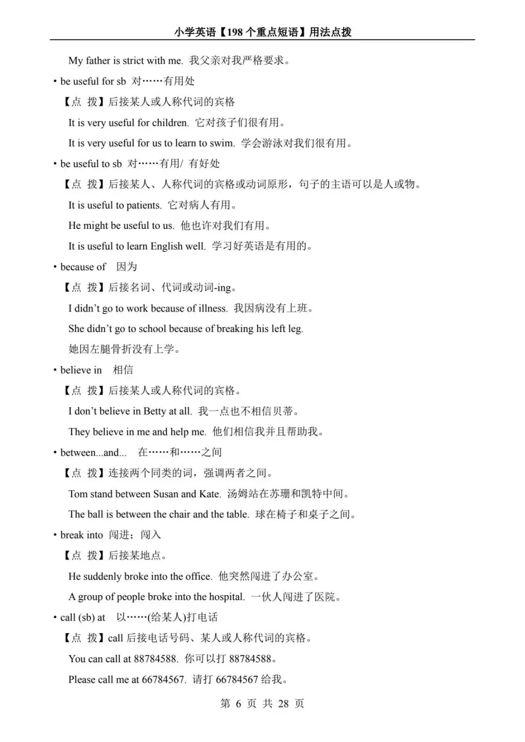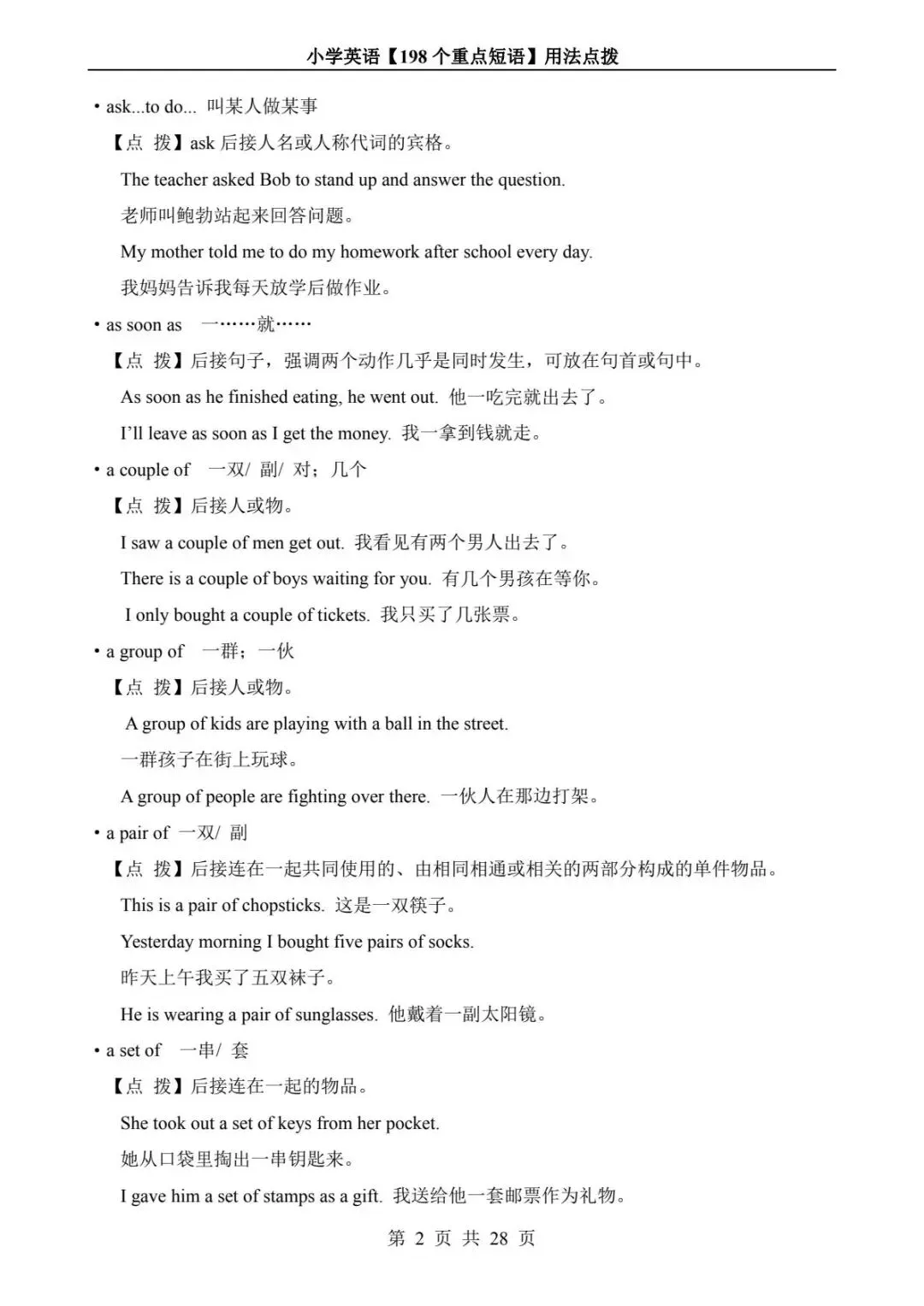 小学英语 198 个重点短语用法点拨(电子版可打印附答案)