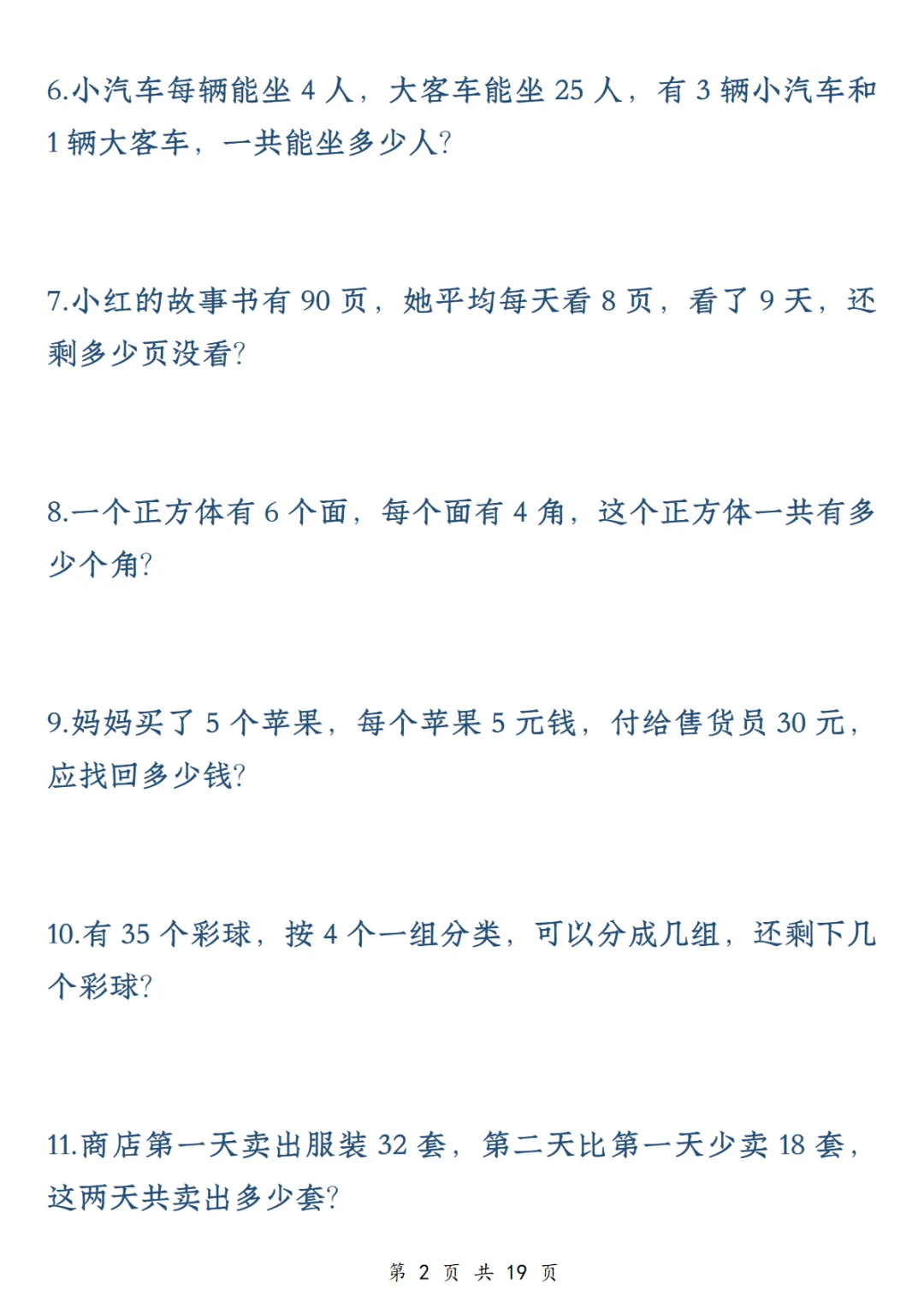 【高清电子版】二年级下数学应用题专训练50道1