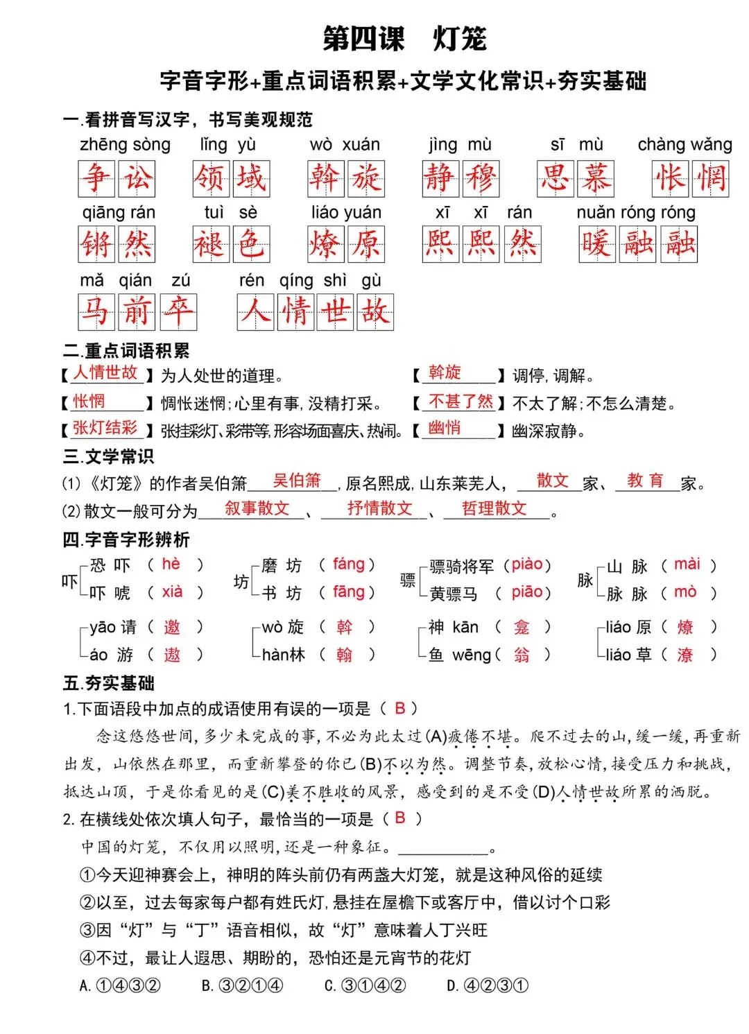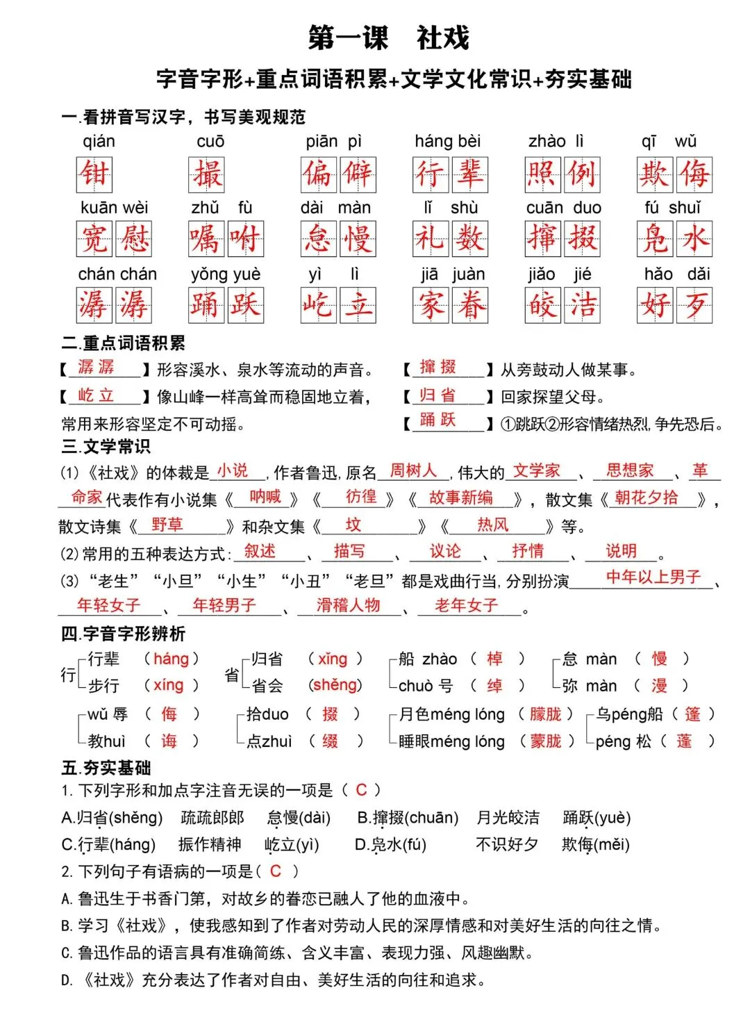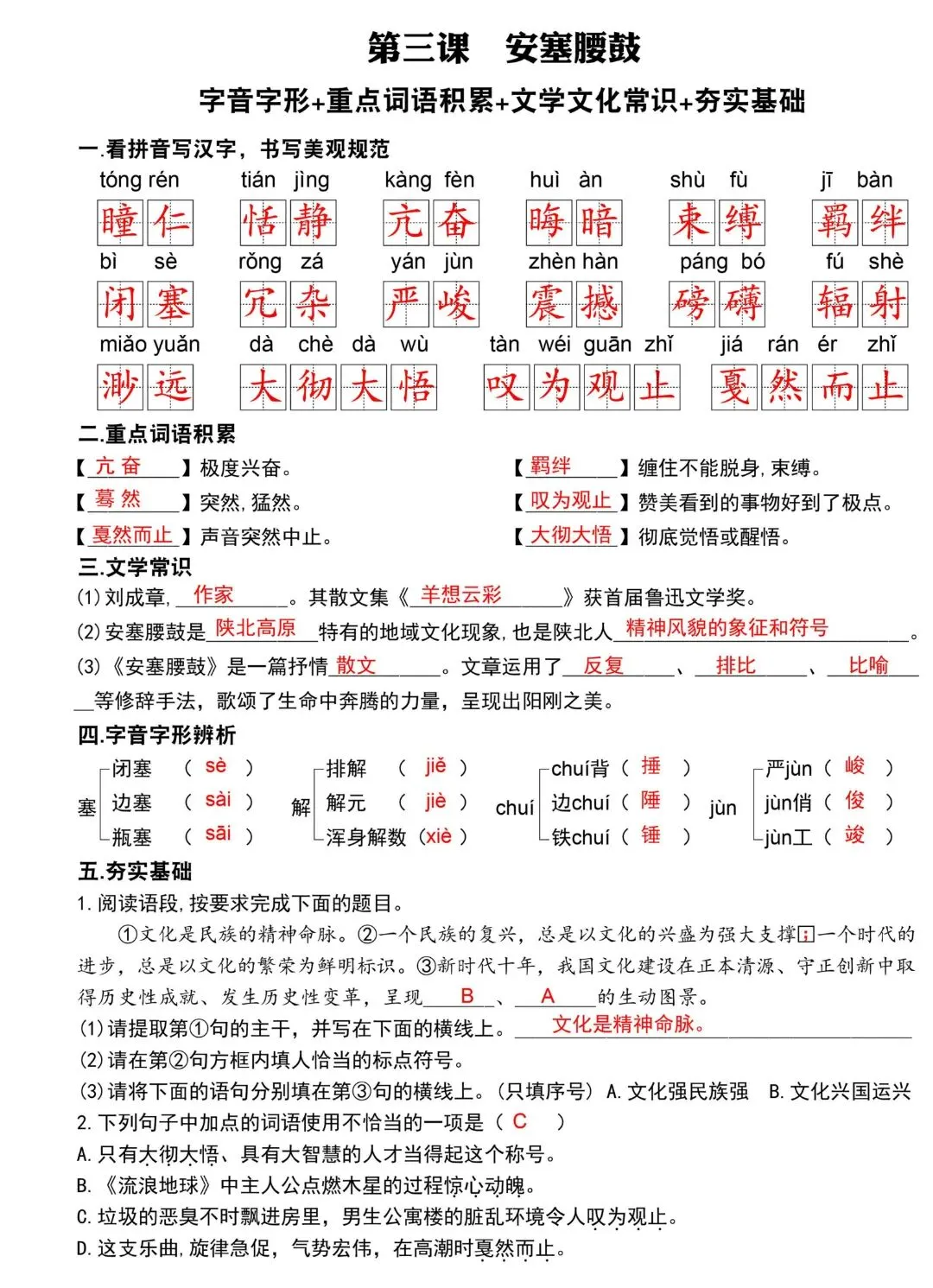 26春最新八年级下册语文一课一练【答案版】|完整电子版可打印。