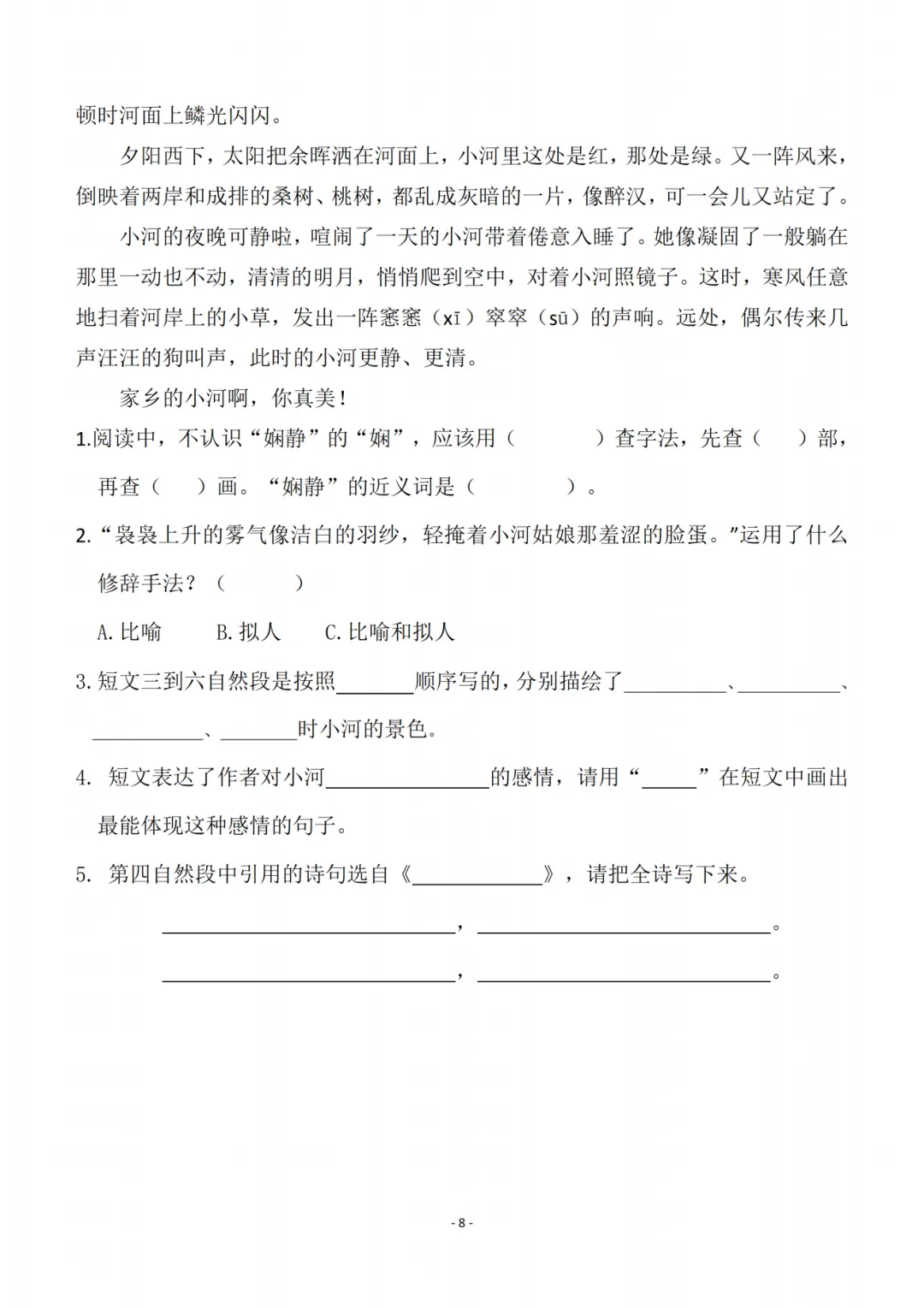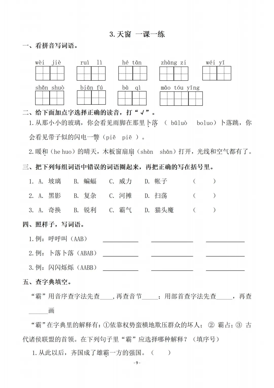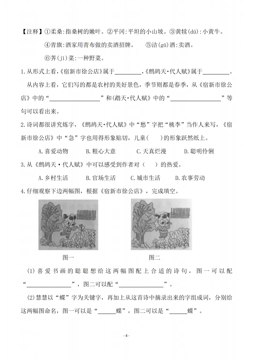 一课一练通过看拼音写词语、多音字辨析、形近字组词、查字典理解字义等基础训练,夯实字词基础;再通过诗词理解填空、课内阅读分析、对比阅读赏析等进阶练习,引导学生深入理解文本内涵,提升古诗文鉴赏与阅读理解能力,实现知识巩固与能力提升的同步推进。