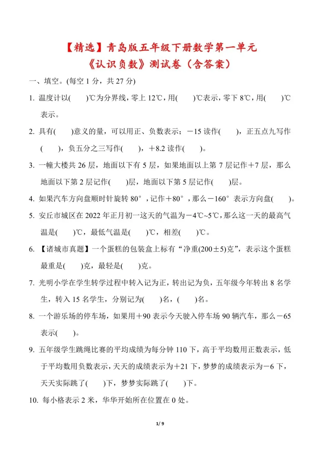 🌟五年级下册青岛63版数学,第一单元检测试卷2套,均有答案,电子版可下载可打印,这2套试卷覆盖第一单元知识点,帮助孩子熟悉常考题型,快速掌握核心知识点,扫除知识盲区,查漏补缺针对性复习,需要的朋友抓紧保存一份,给孩子用起来吧💪!