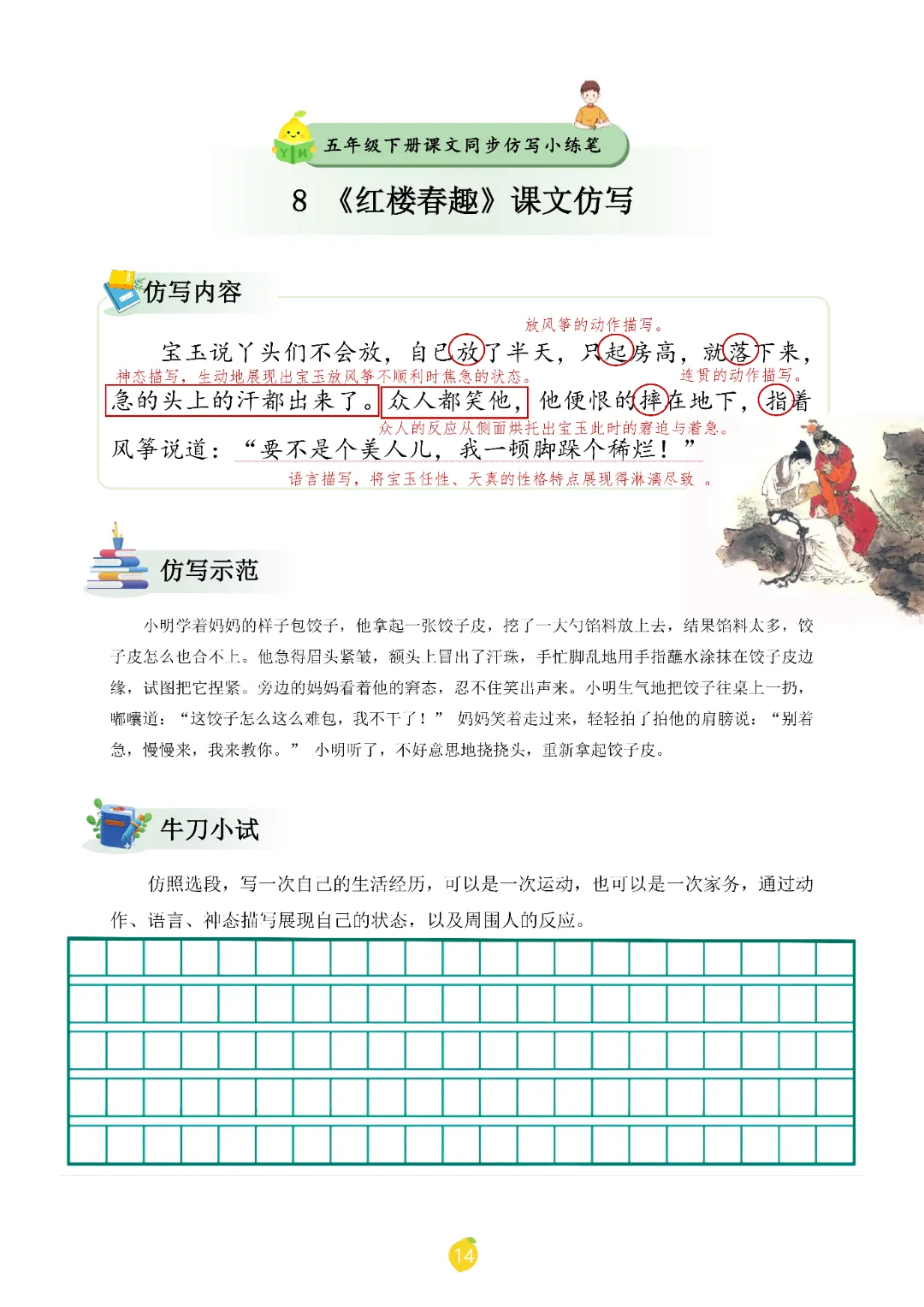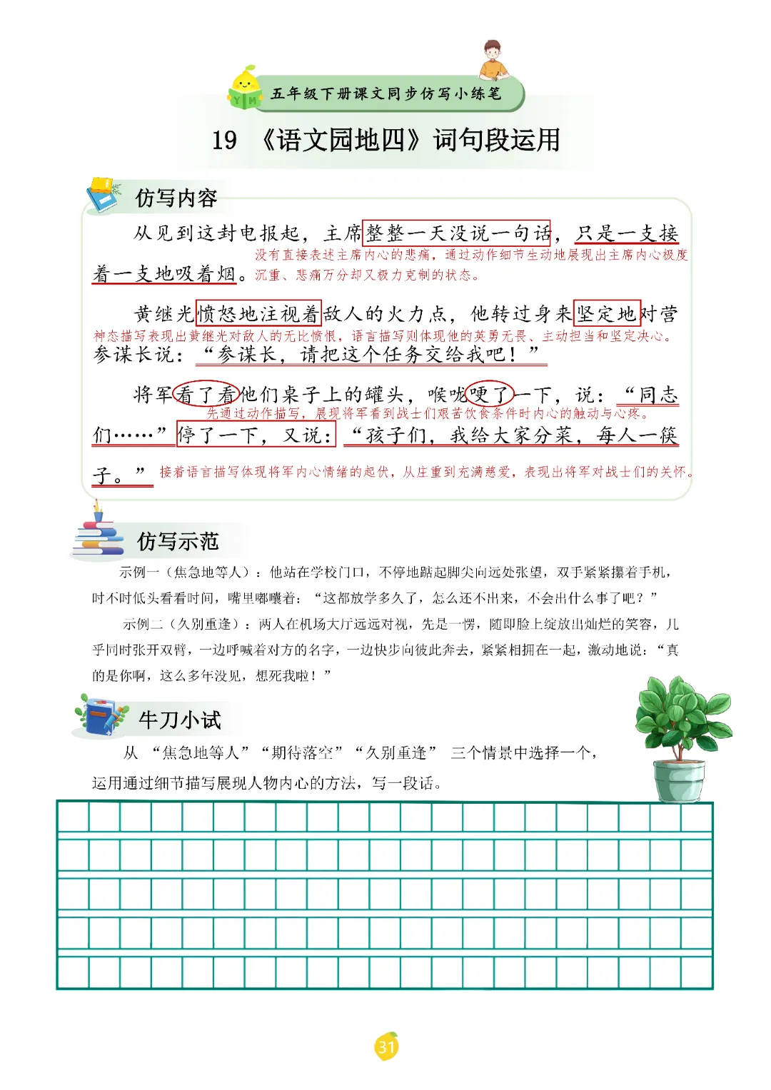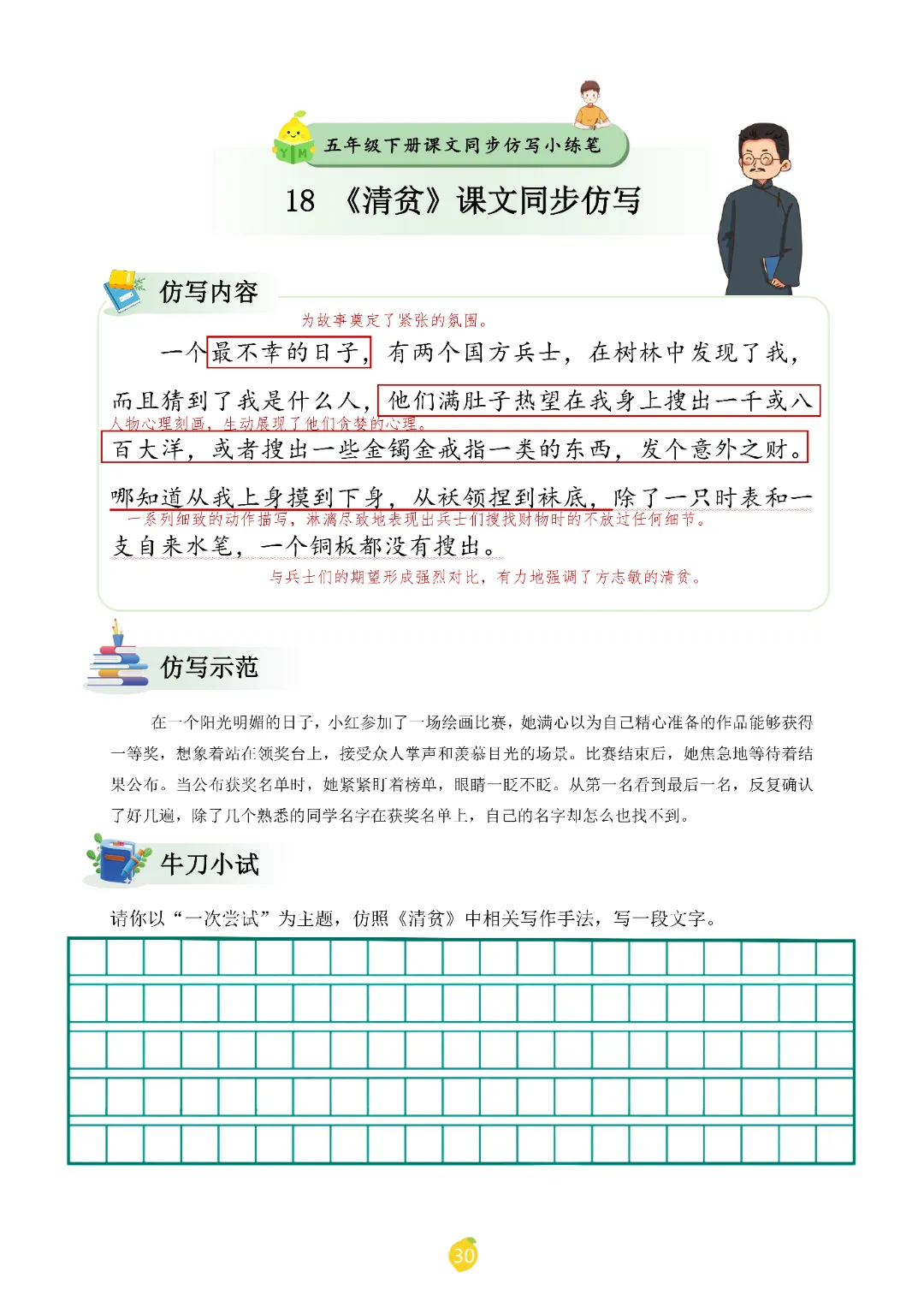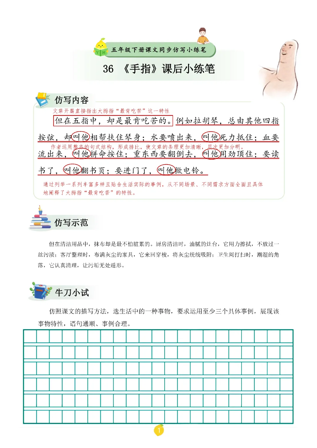 2026春人教统编版五年级下册语文《课文仿写小练笔》,电子版可打印