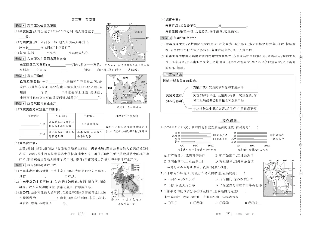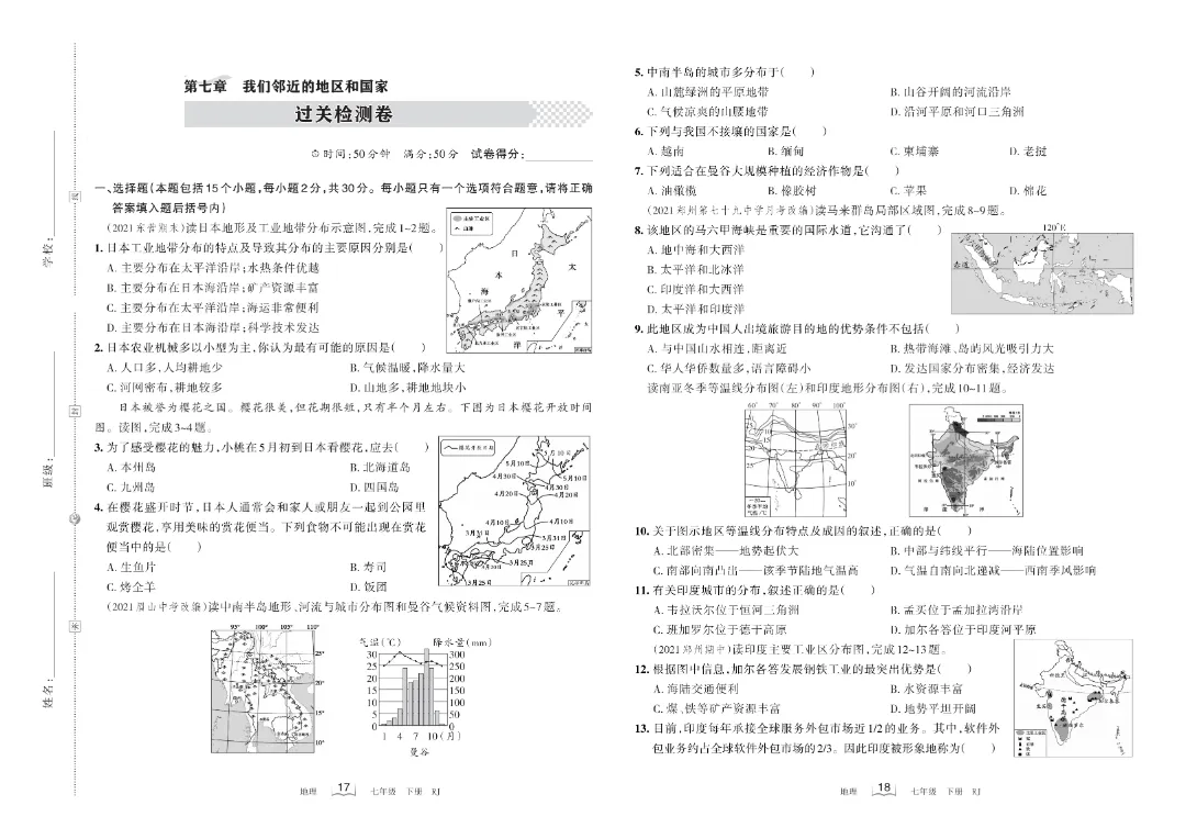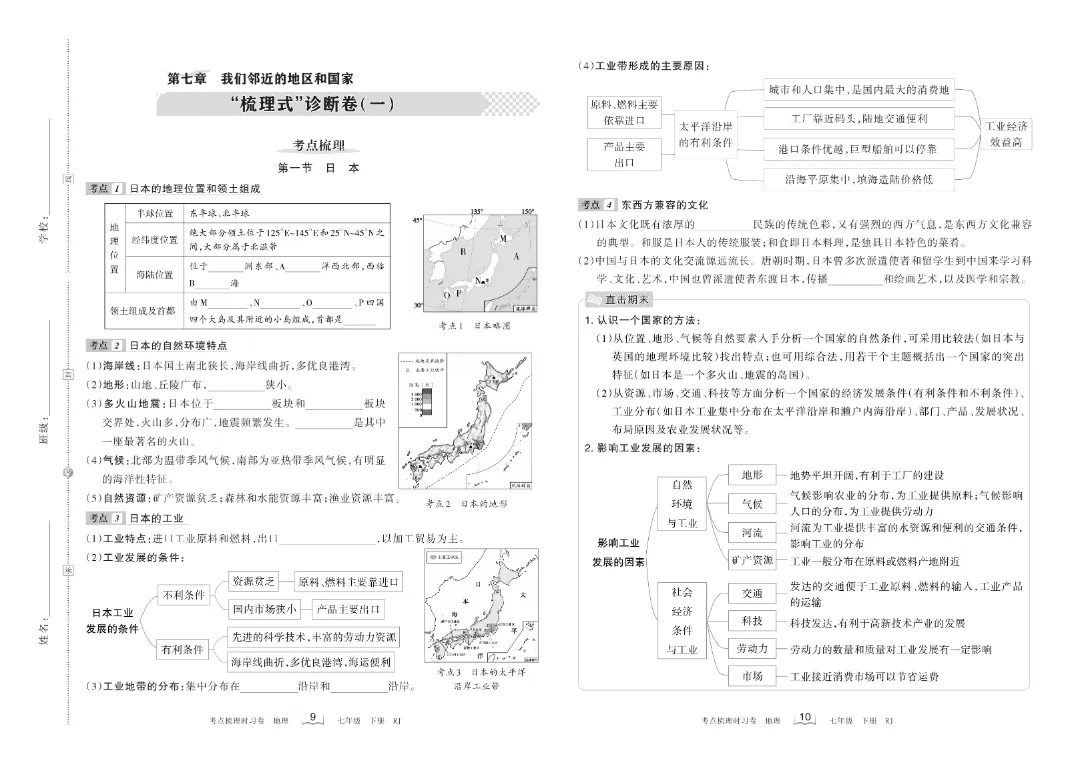 【七年级下册地理】【人教版】第七章我们临近的地区和国家梳理式诊断卷+过关检测卷带答案解析|完整高清电子版