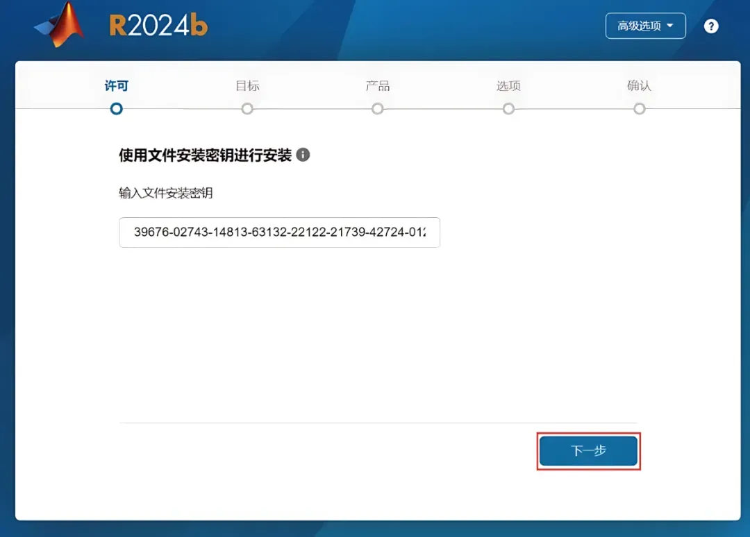 4、依次点击【高级选项】、【我有文件安装密钥】