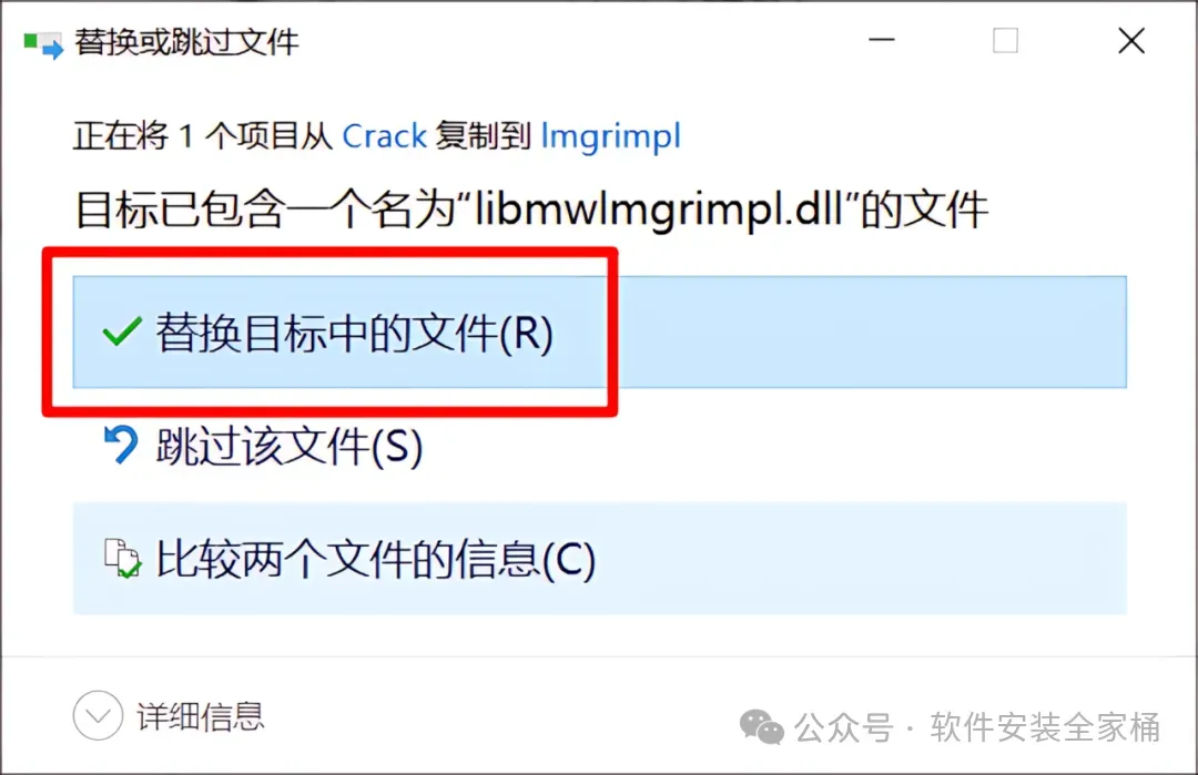 20、点击【替换目标中的文件】