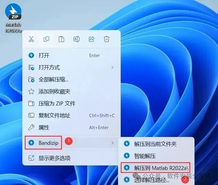 1、下载Matlab R2022a软件安装包到电脑上,右键选择【解压到Matlab R2022a\】