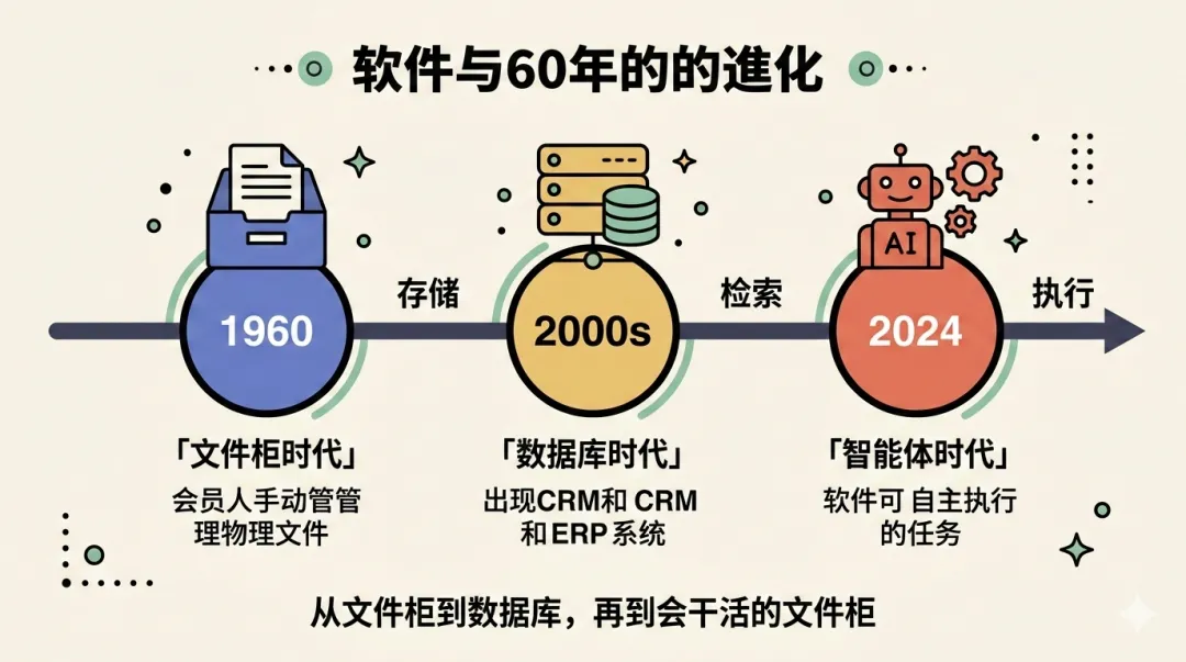 要理解 AI 对 SaaS 的影响,我们需要先回顾软件 60 年的进化史。