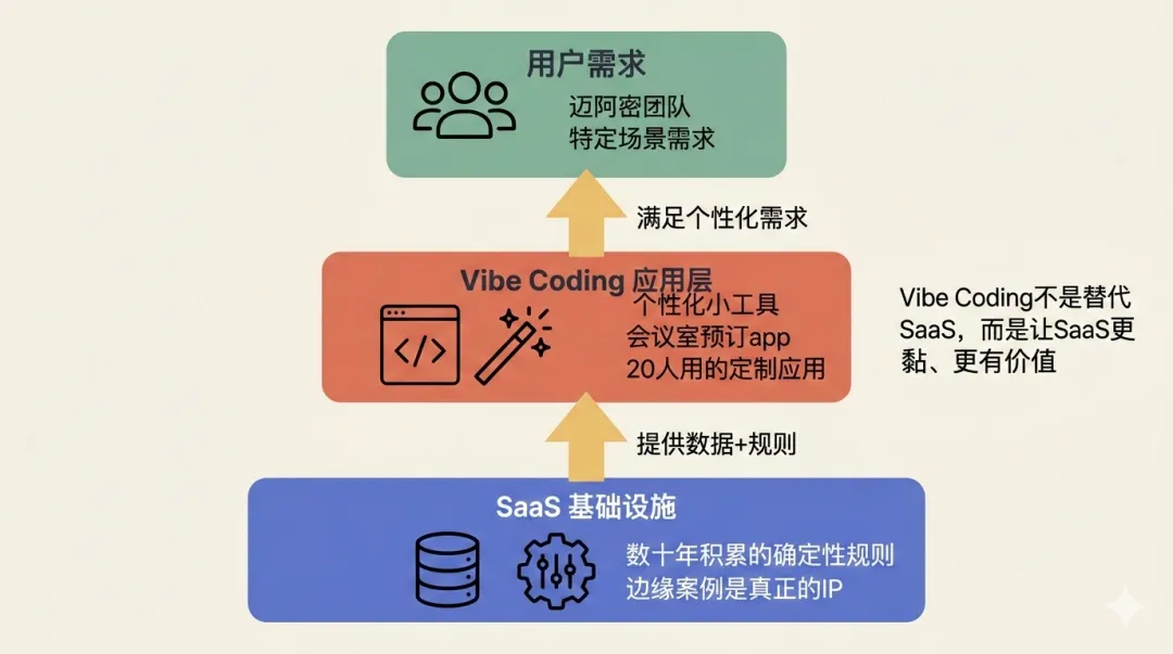 这实际上让 Workday 更黏、更有价值。Vibe Coding 不是替代 SaaS,而是在 SaaS 之上构建更个性化的应用。