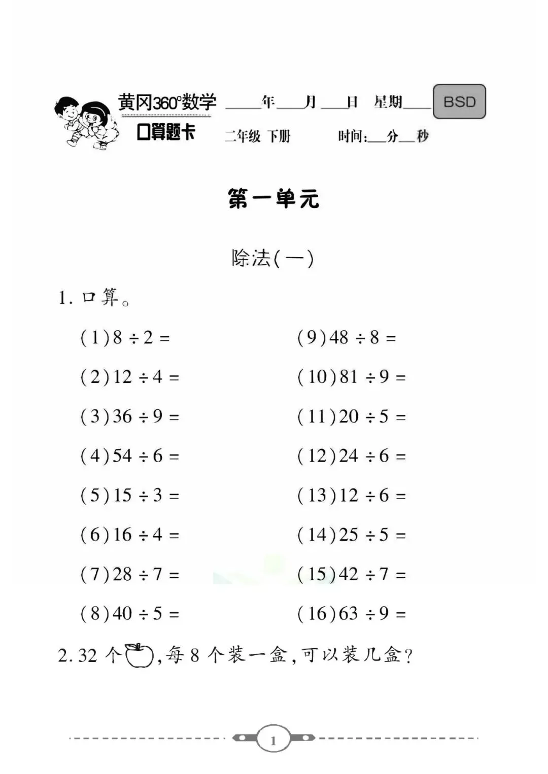 《口算题卡》二年级下册数学北师版需要的家长抓紧打印出来,让孩子练一练吧。