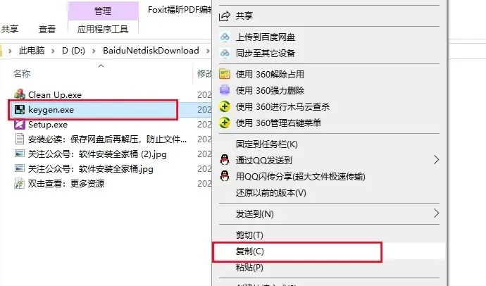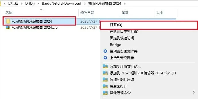 1.打开下载的福昕PDF软件安装包,鼠标右击压缩包选择【解压到当前文件夹】。