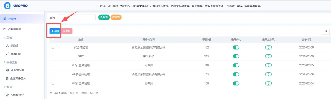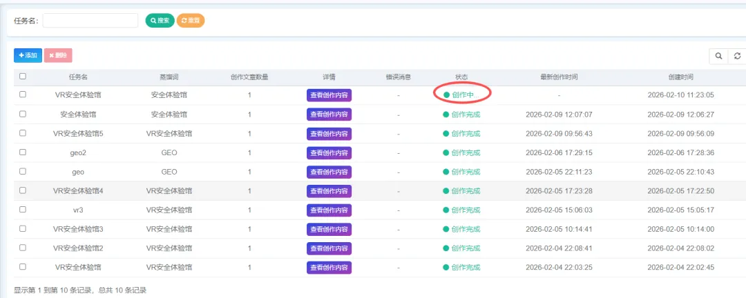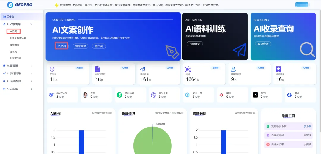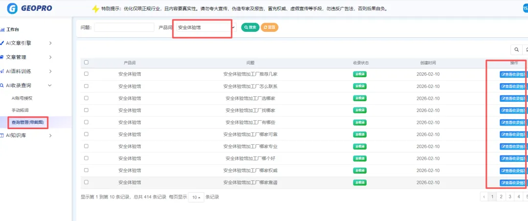 在GEO加速器中点击:AI查收录——开始执行