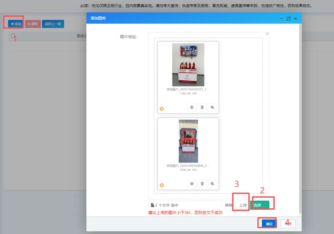 2.4添加——选择——上传——确定